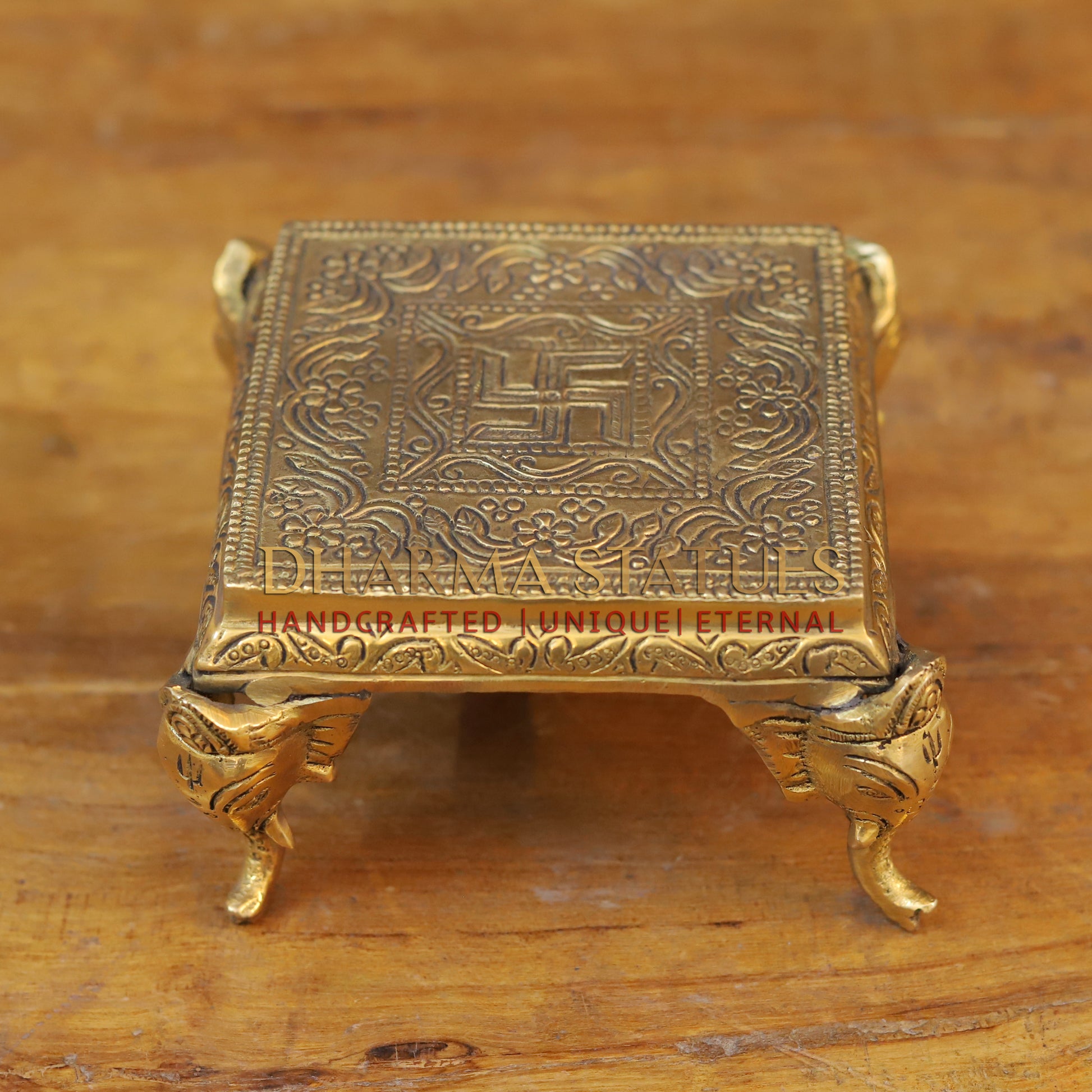 Brass Pooja Chowki, With Ganesh Legs, Fine Golden Finish 3.5"