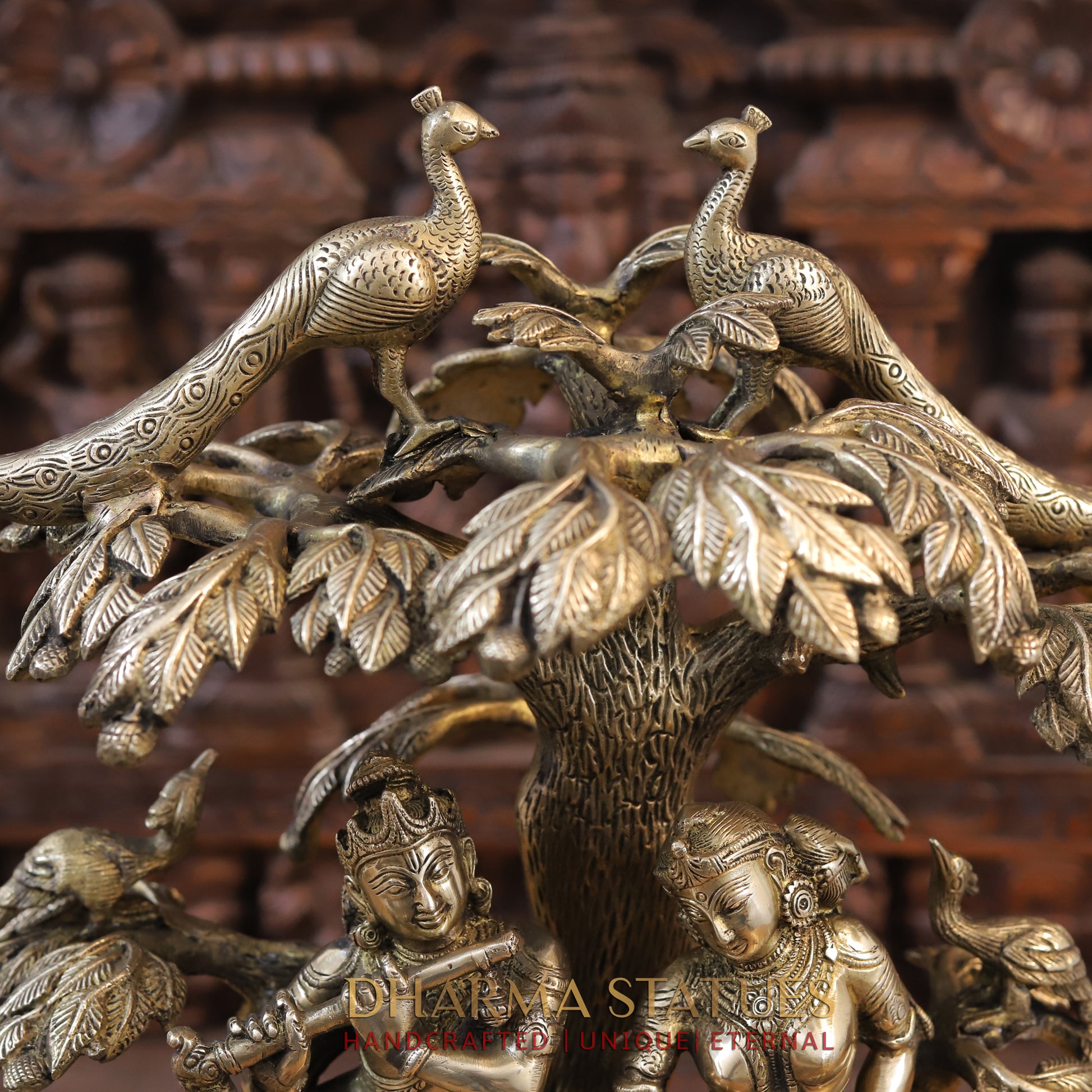 Brass Radha Krishna Idol, Under the Tree, Fine Golden Finish 21"
