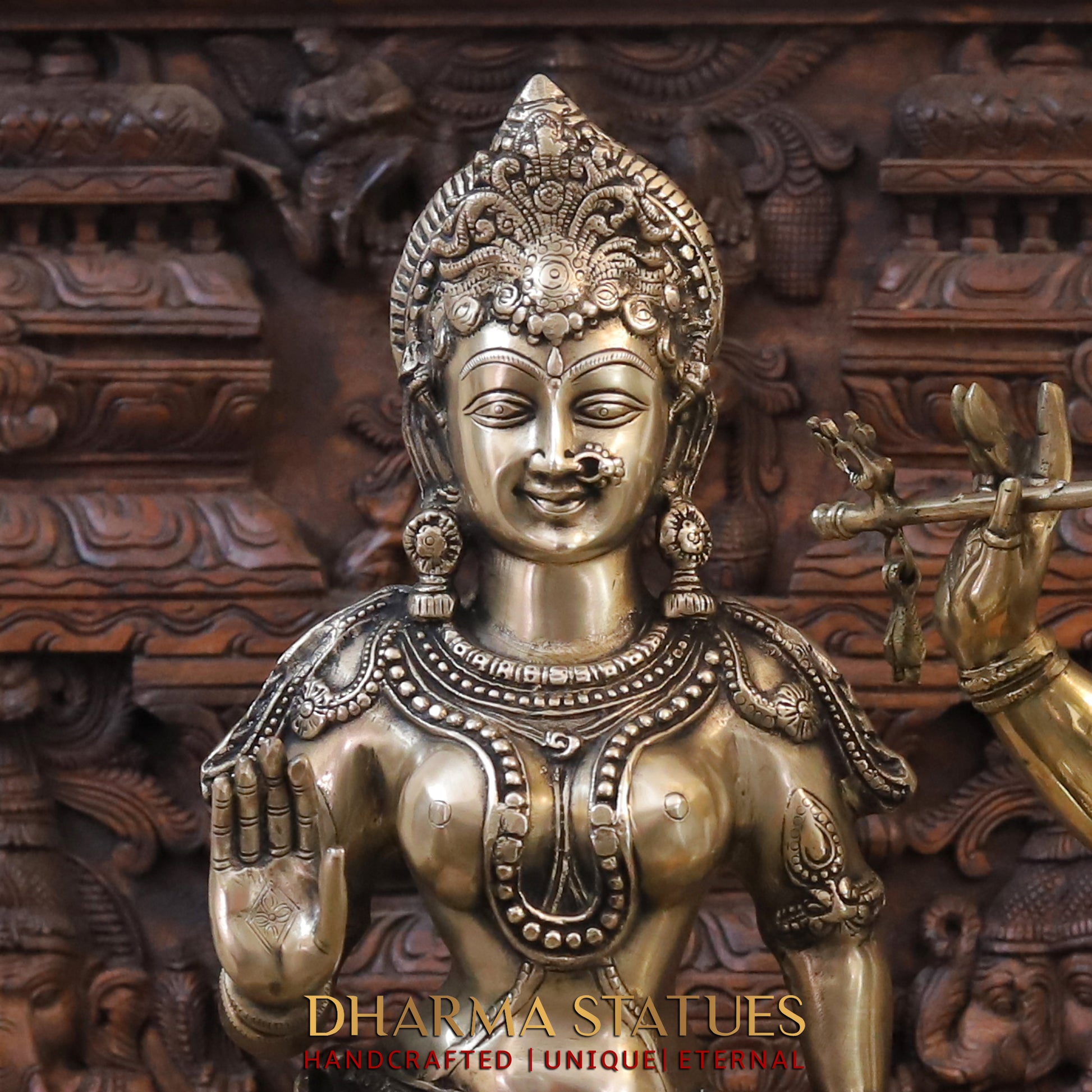 Brass Radha & Krishna Playing Flute, Fine Golden Finish, 36.5"