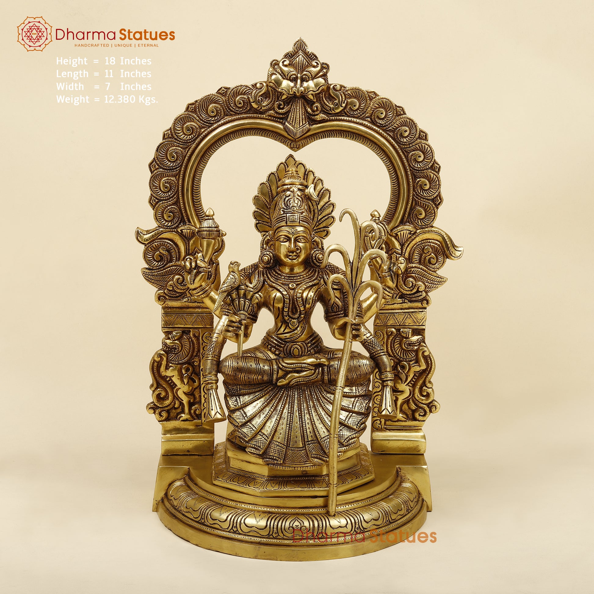 This Brass Rajarajeshwari with Frame features a stunning golden finish and stands at 18 inches tall. Crafted from high-quality brass, this beautiful piece showcases intricate details and exquisite artistry. Perfect for any home or office, it brings a touch of elegance and sophistication to any space.
