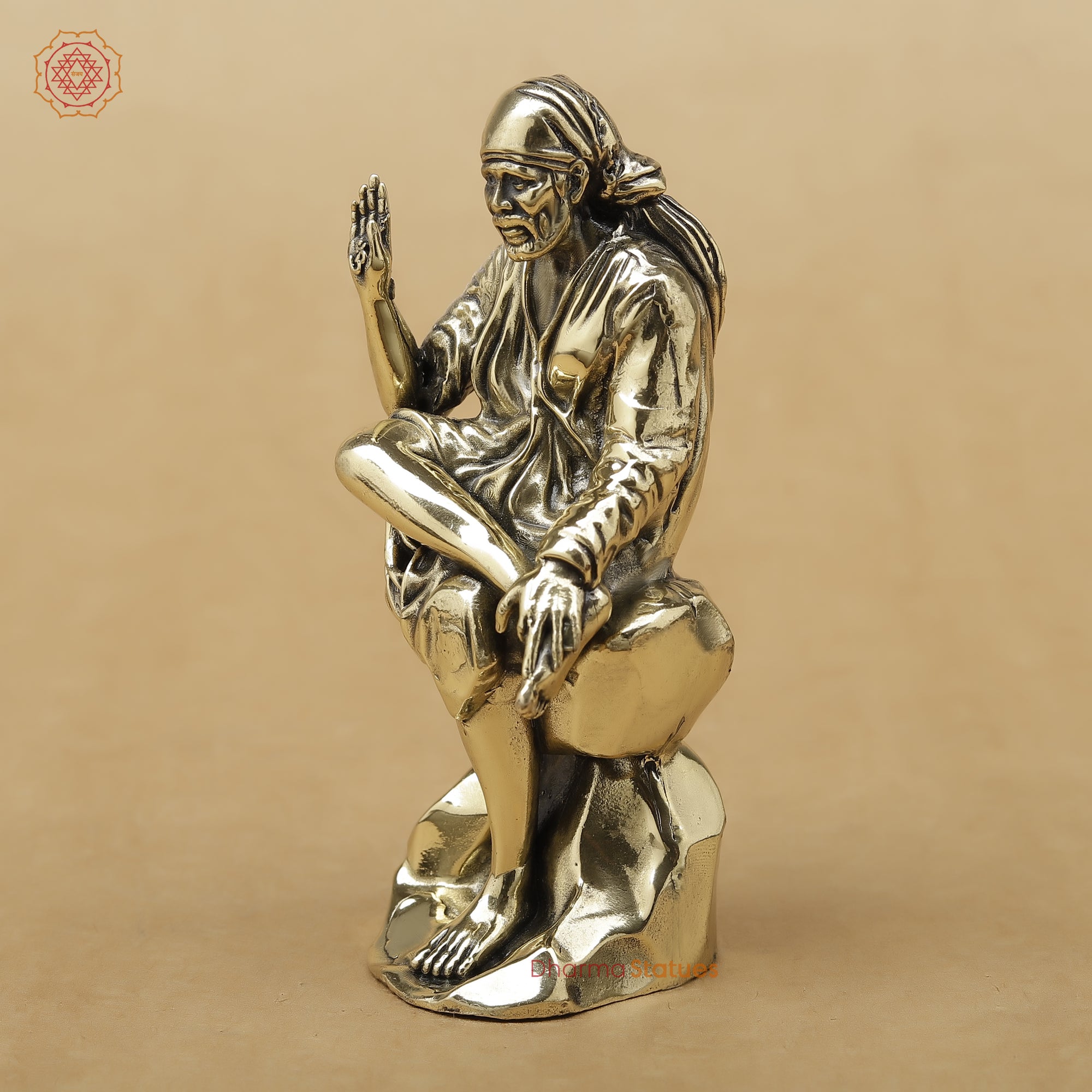 Invite peace, protection, and spiritual harmony into your home with this beautifully handcrafted Sai Baba Idol. Designed with a radiant golden finish, this statue captures Baba’s iconic sitting posture and blessing hand, symbolizing serenity, guidance, and compassion.