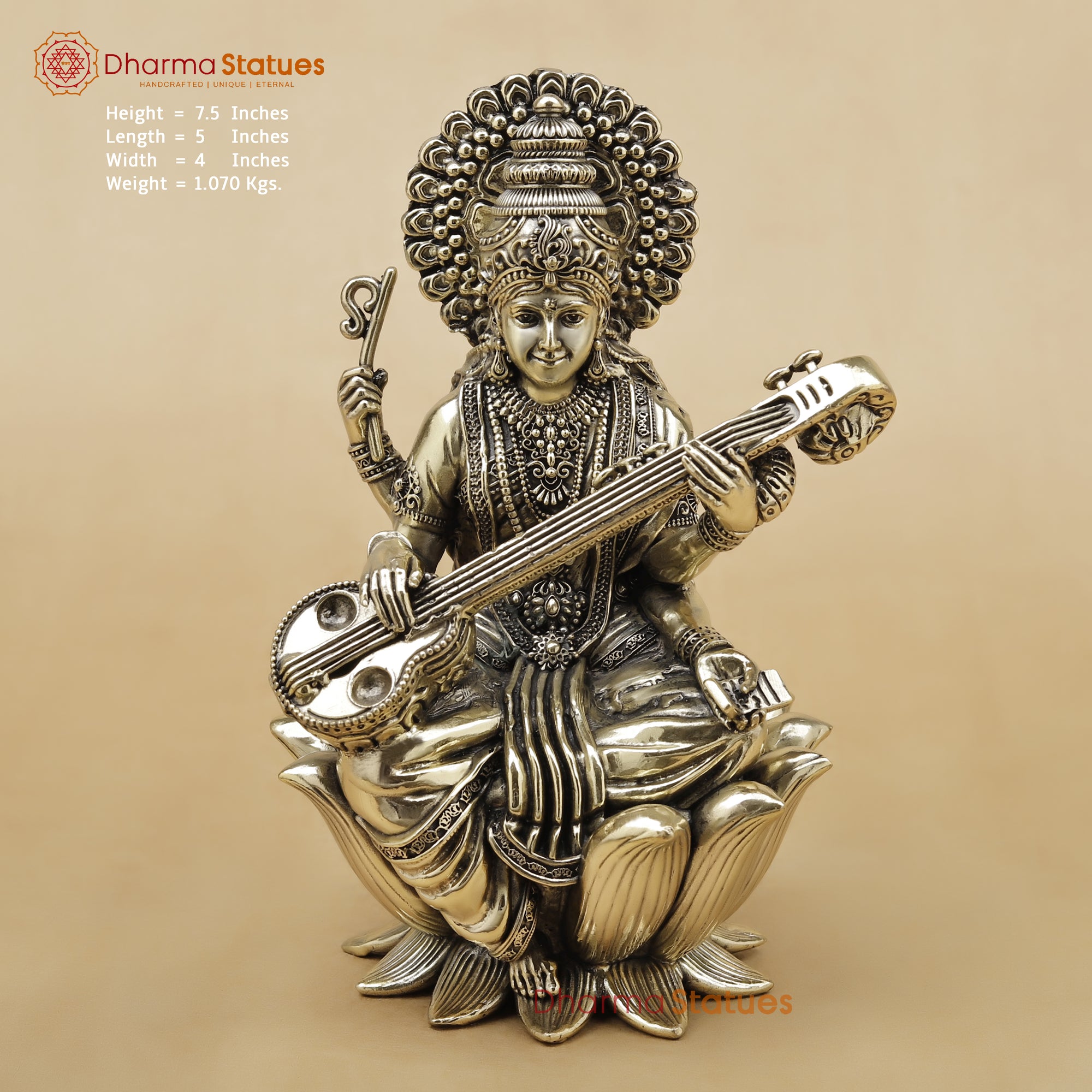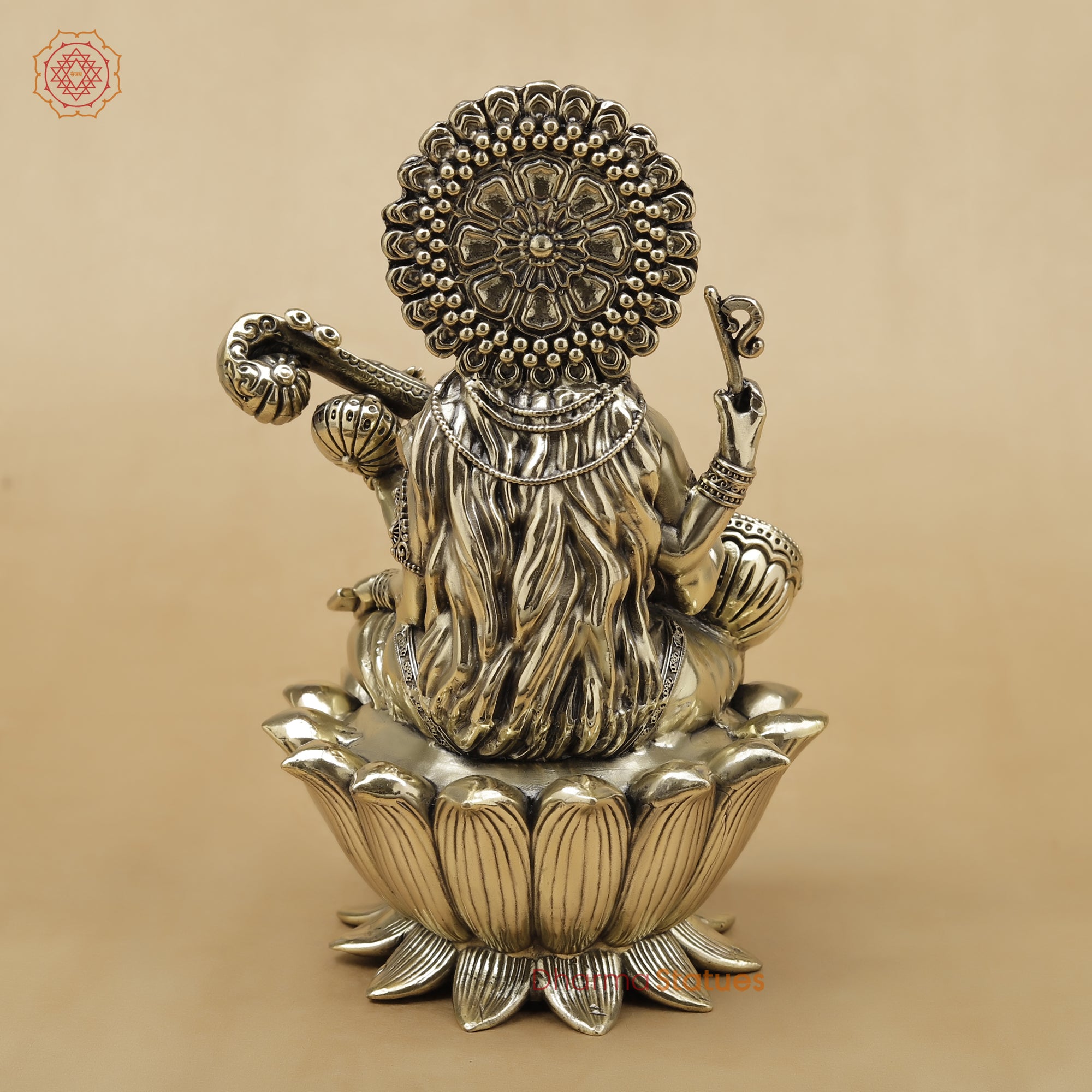 This exquisite Goddess Saraswati statue showcases divine elegance, seated gracefully on a lotus while playing the veena. Handcrafted with intricate detailing, it symbolizes wisdom, creativity, and spiritual enlightenment. A perfect addition to homes, study rooms, offices, and gifting, it brings knowledge, harmony, and positive energy to any space.