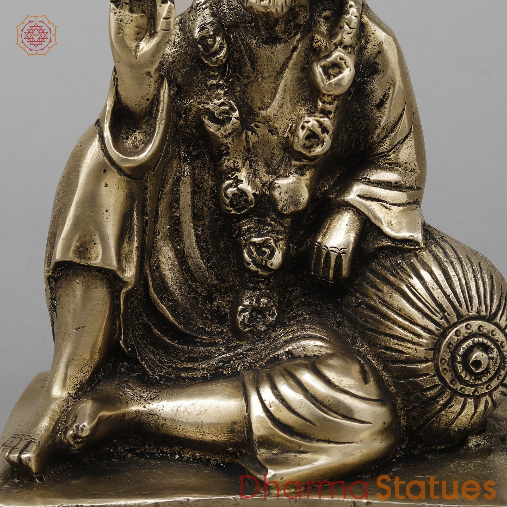 Brass Shirdi Sai Baba, Golden Finish, 6.5"