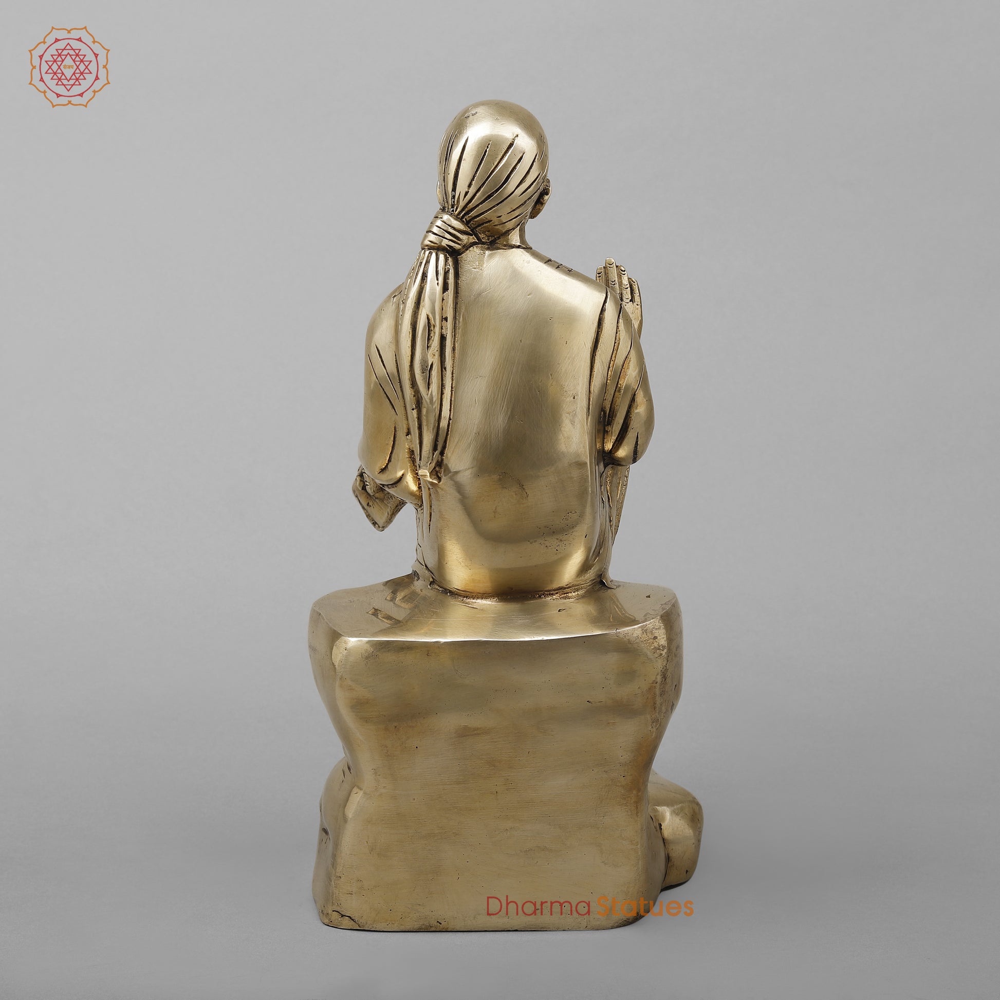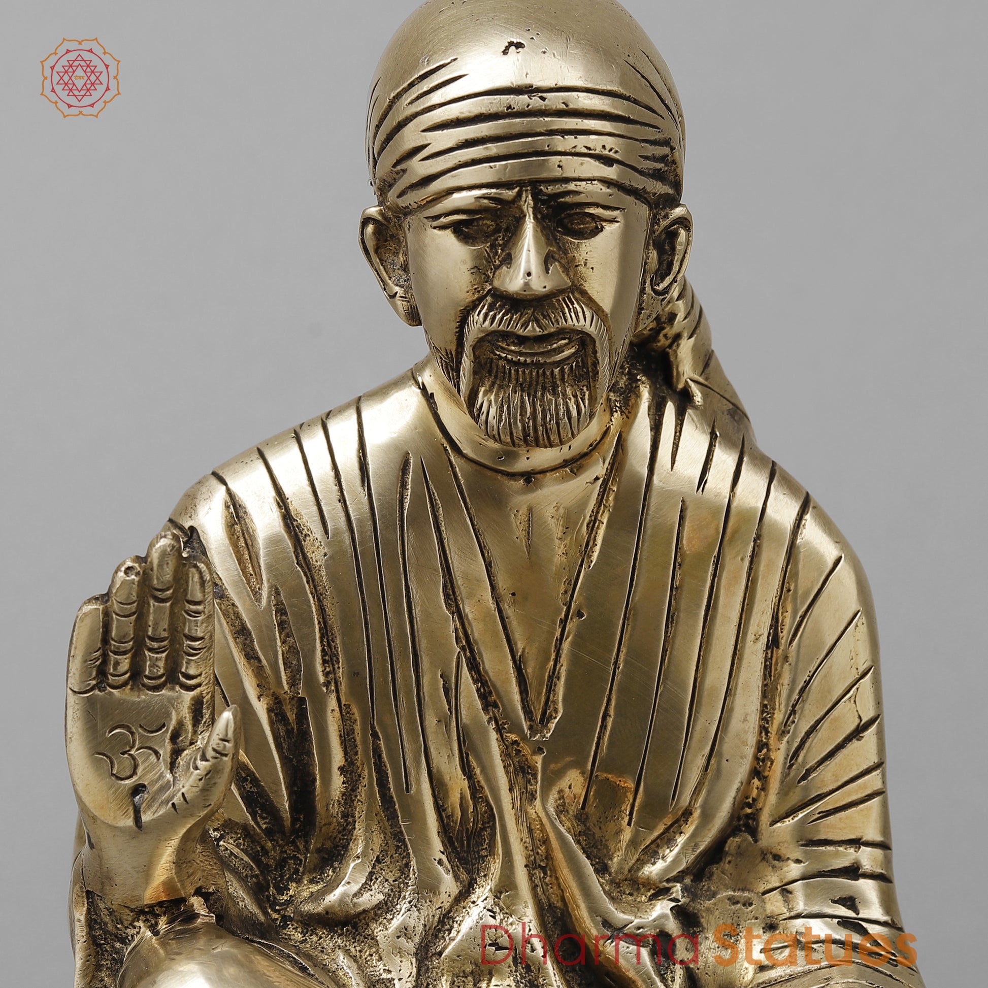 Brass Shirdi Sai Baba in Blessing Posture, Golden Finish, 12.5"