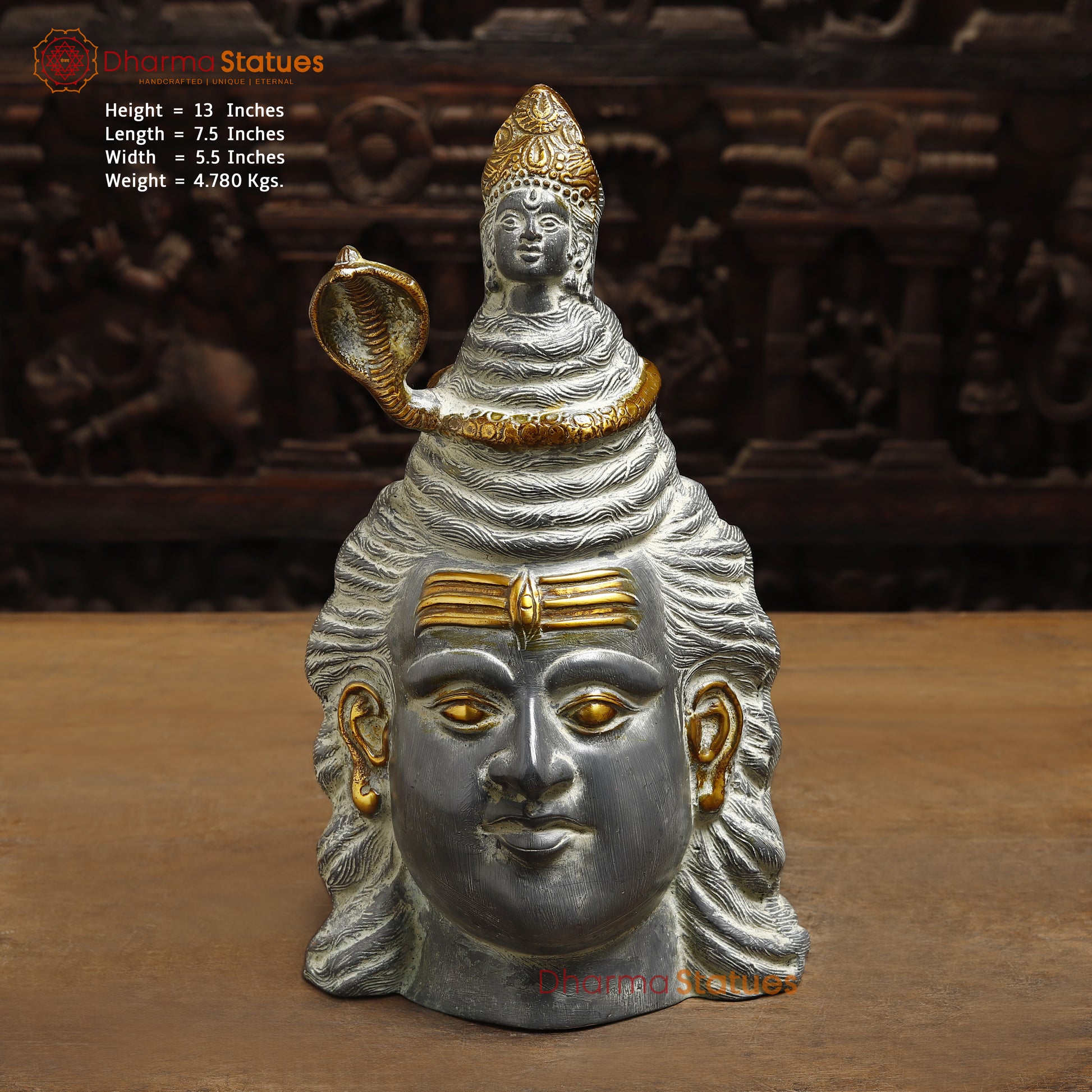 Brass Shiva Head, Grey Color with Golden Finish, 13"