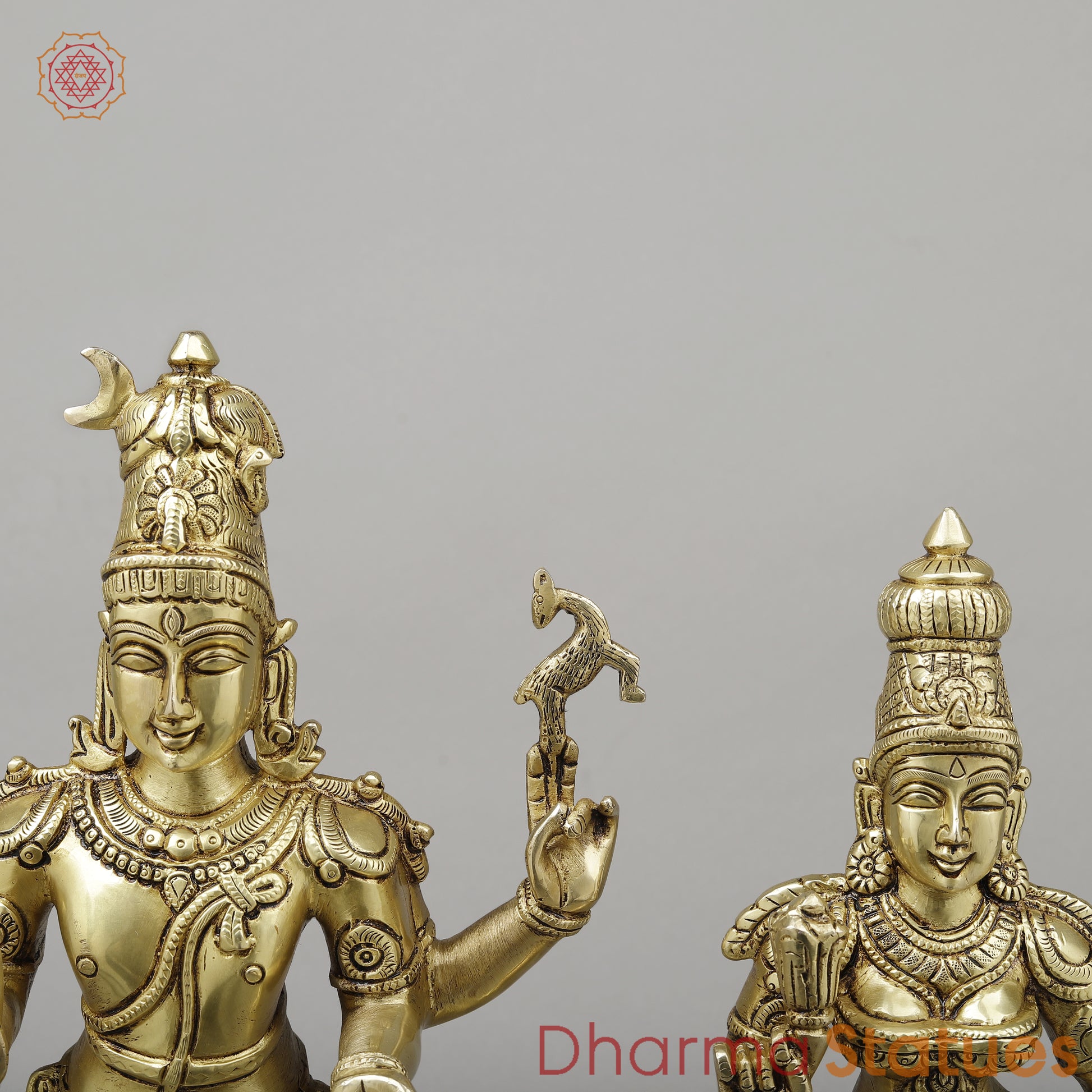 This elegant Brass Shiva and Parvati statue, standing together on a pedestal, beautifully symbolizes divine unity and love. Crafted with intricate details, it captures the serene power of Lord Shiva and the grace of Goddess Parvati. The piece exudes spiritual significance, making it a perfect addition to any home or temple, bringing blessings and harmony to your space.