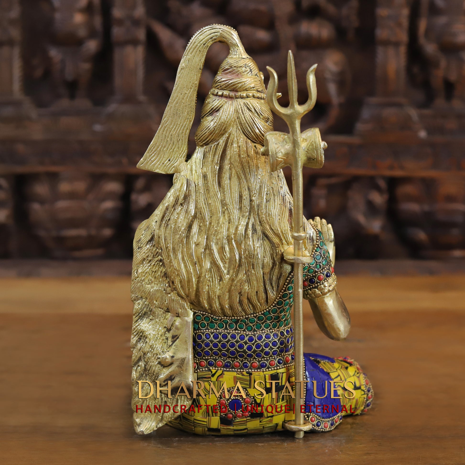 Brass Shiva seated in Blessing Posture, Golden & Stonework, 12"