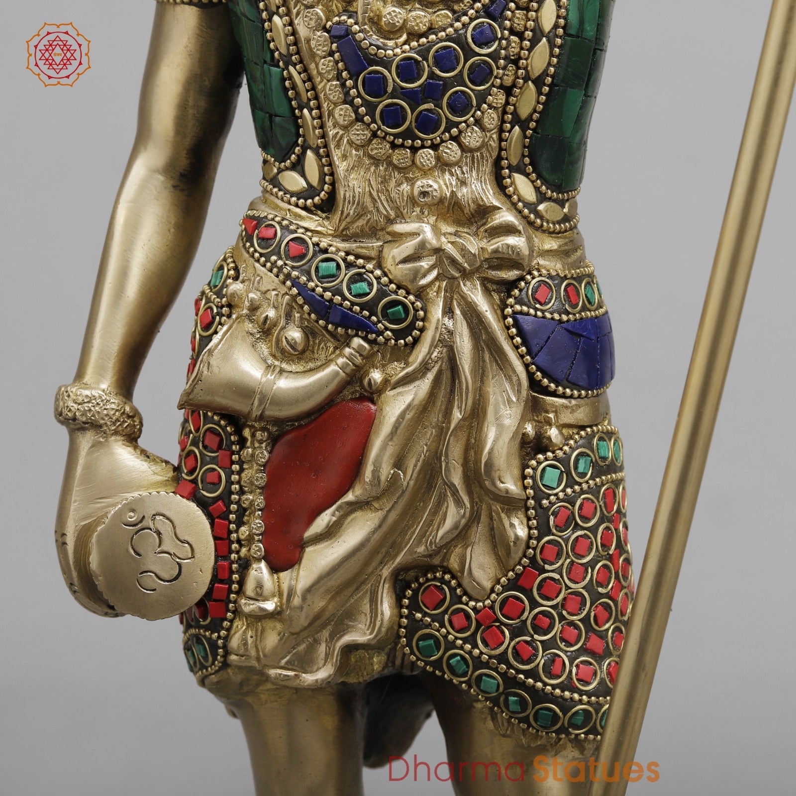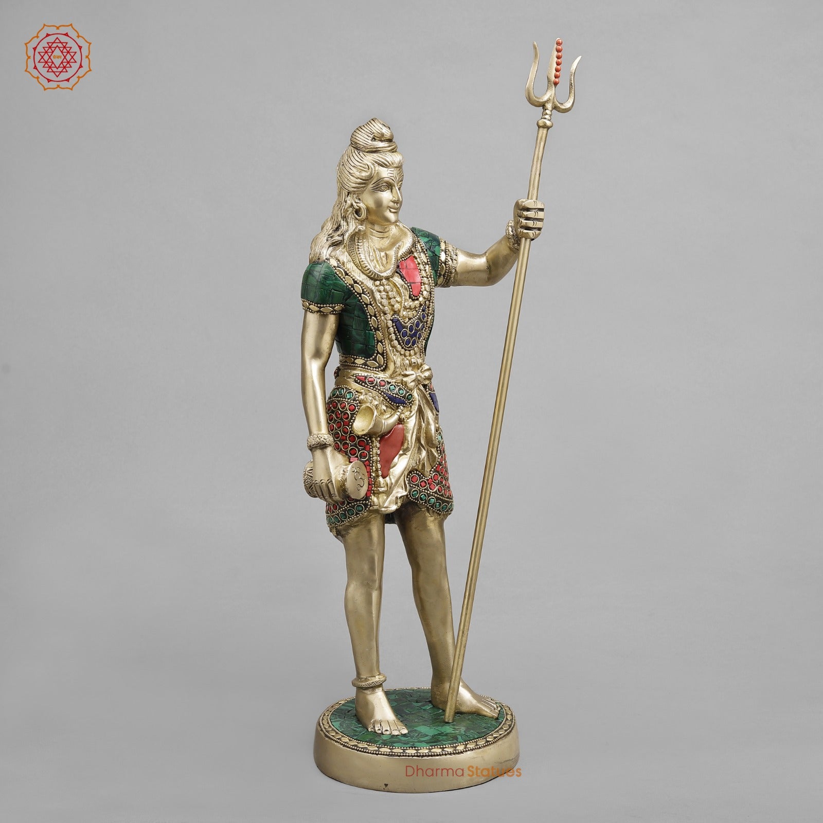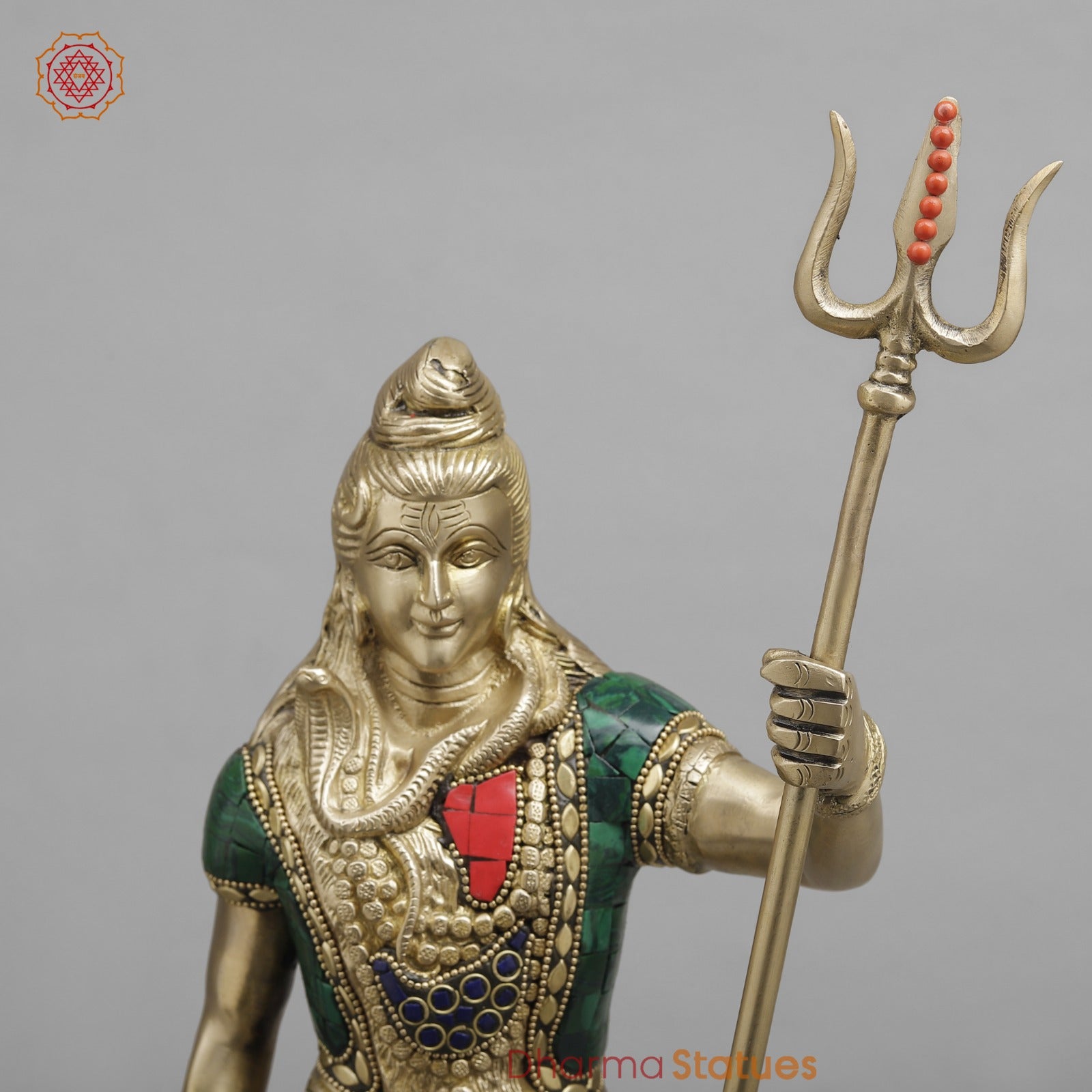 This finely handcrafted brass Lord Shiva statue features intricate detailing with colorful stone inlay work. Depicting Shiva holding the trident, it symbolizes strength, protection, and divine balance—perfect for home temples, spiritual décor, or auspicious gifting.