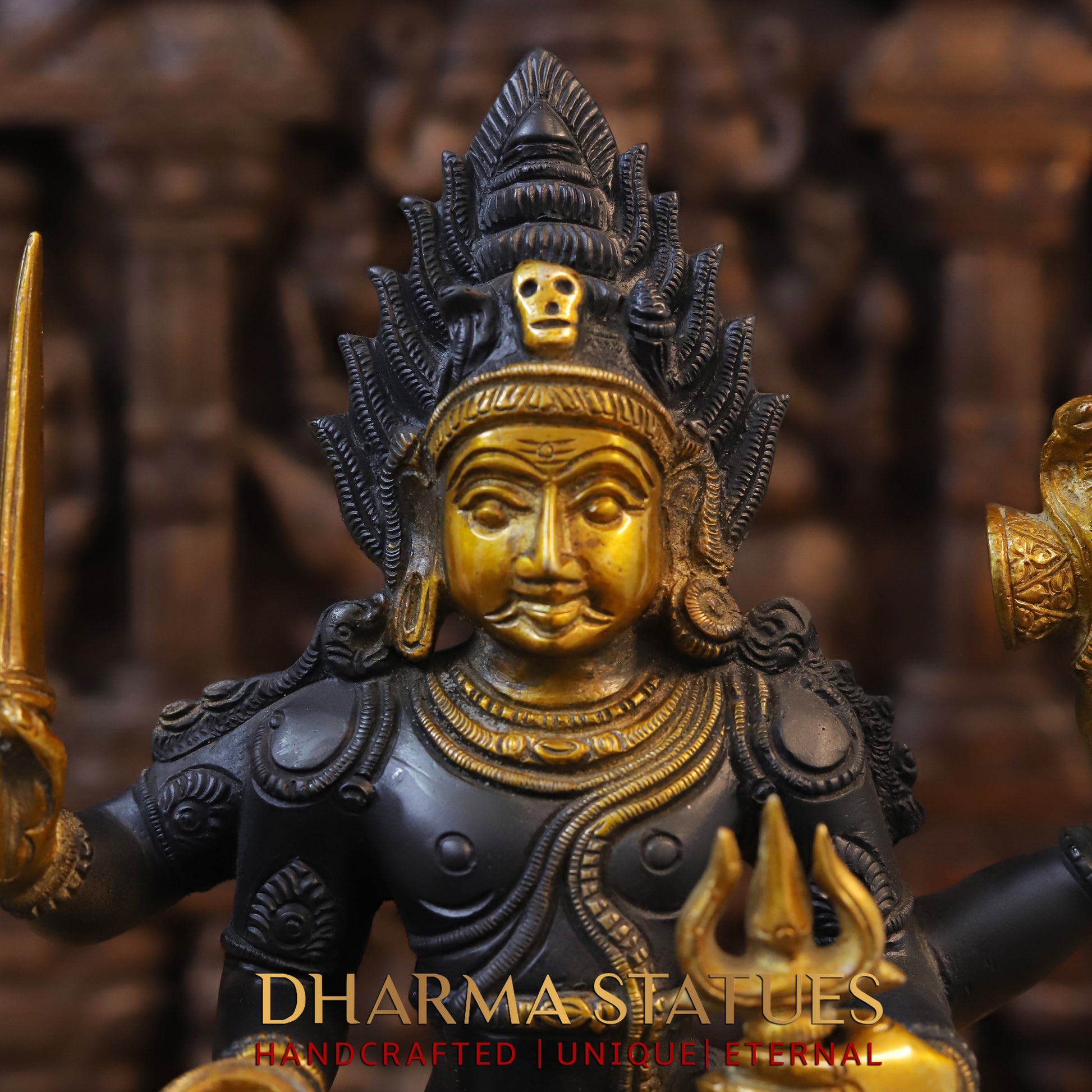 Brass Shiva Standing Four Armed, Black Patina & Golden Finish, 17.5"
