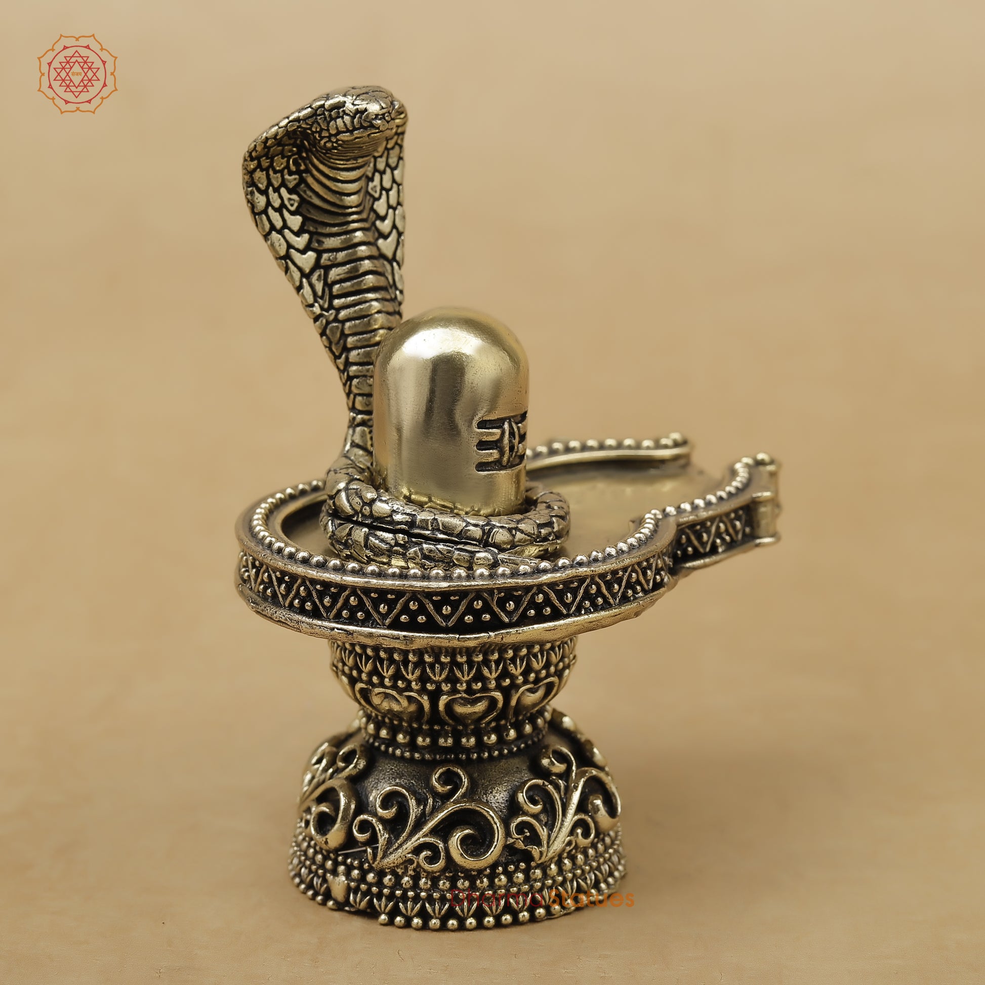 This beautifully crafted Shiva Lingam features a majestic naga hood symbolizing divine protection and spiritual power. The intricate carvings and antique finish highlight its sacred presence. Perfect for pooja rooms, meditation spaces, and home décor, it brings calmness, positivity, and blessings of Lord Shiva.