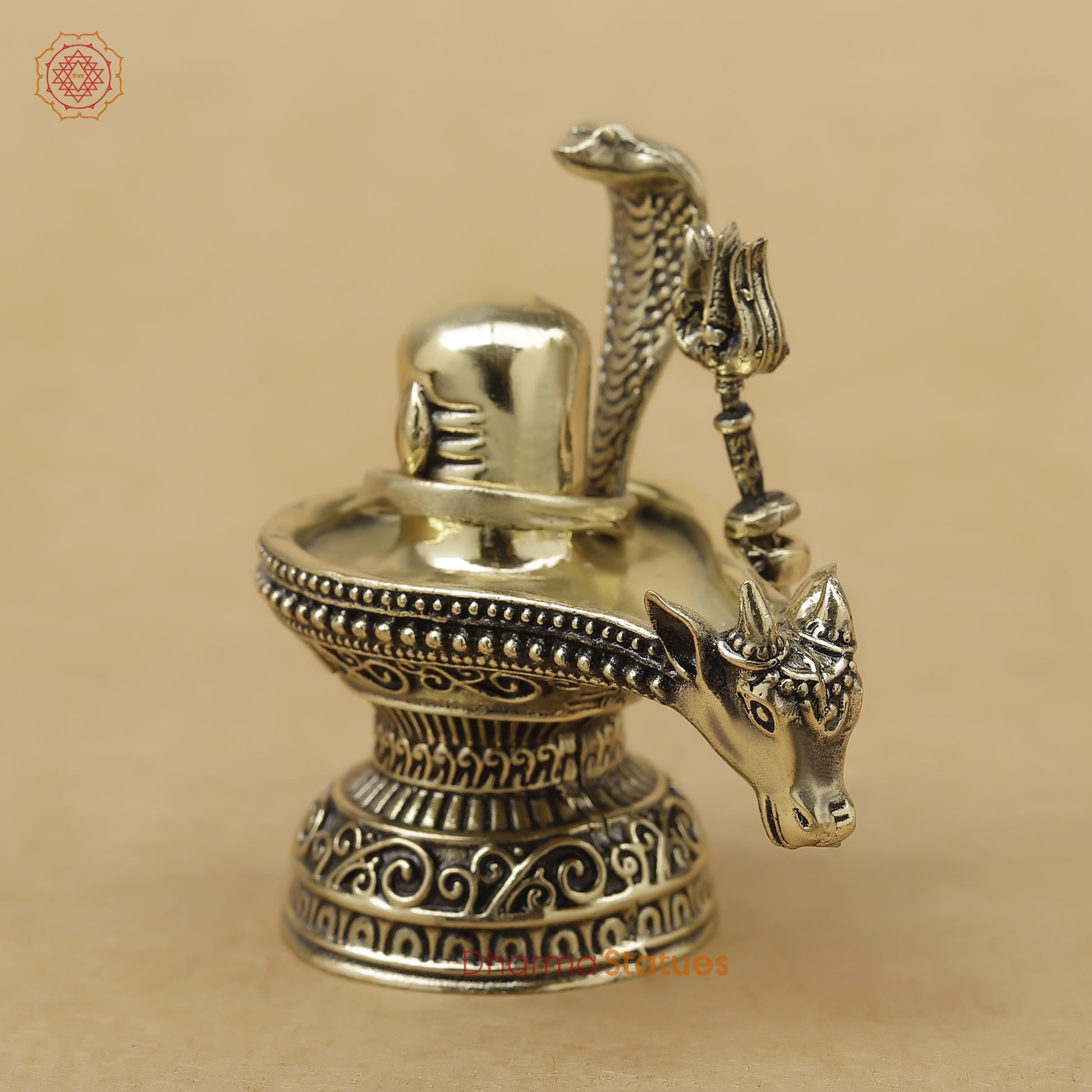 Brass Shivling with Nandi & Trishul Fine, 2.5"