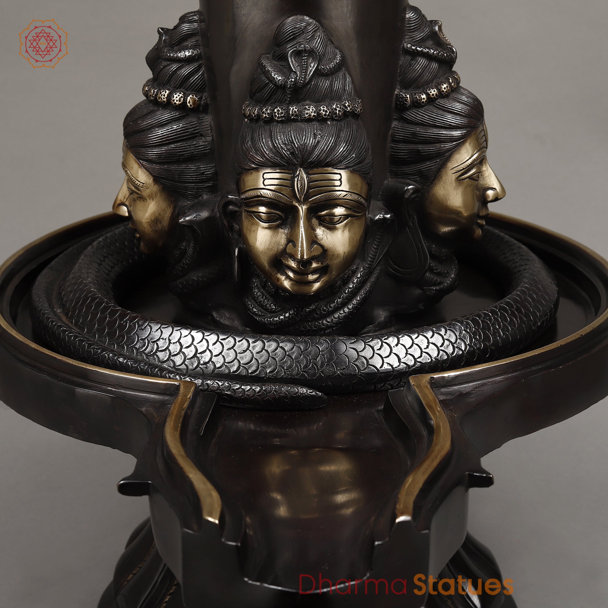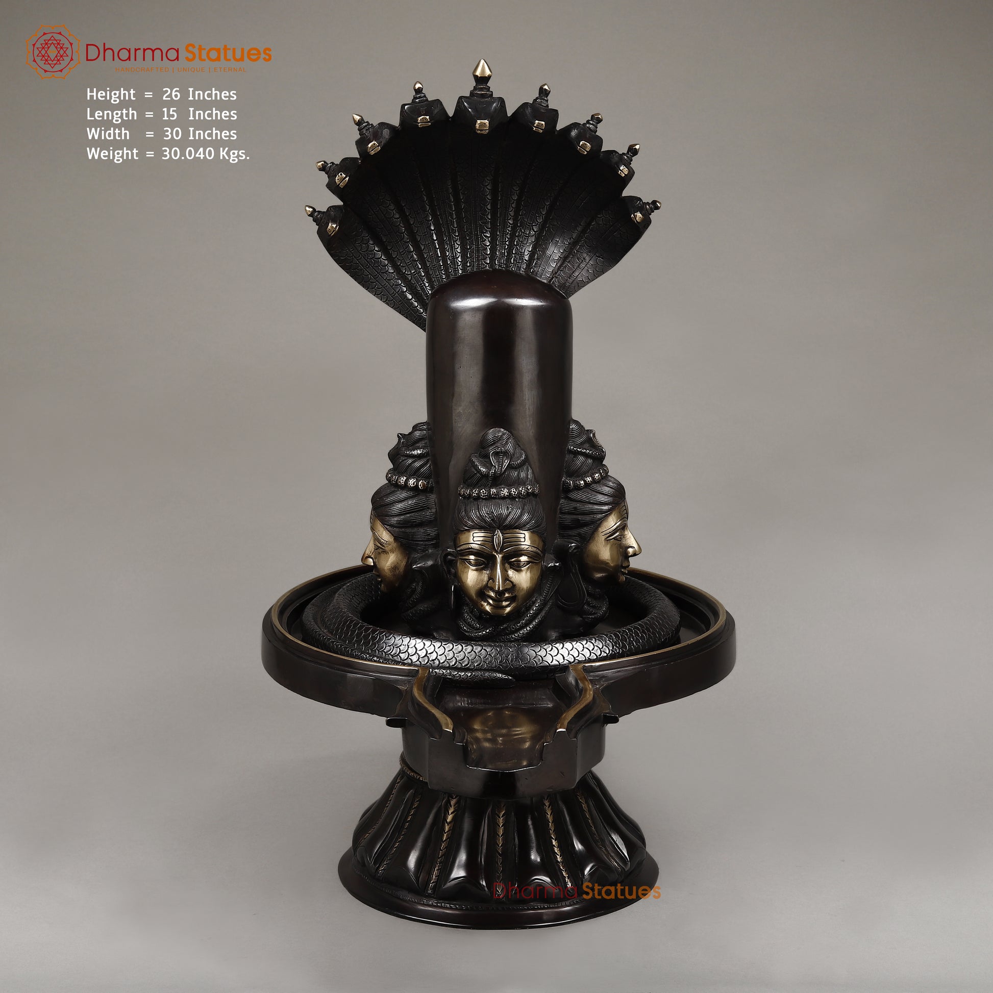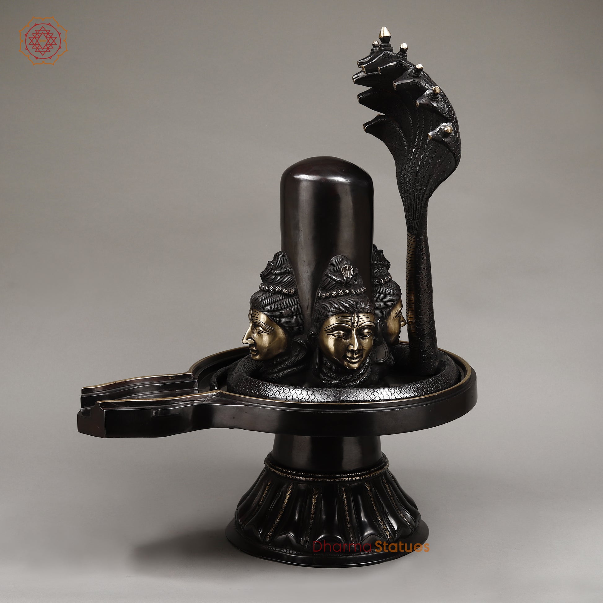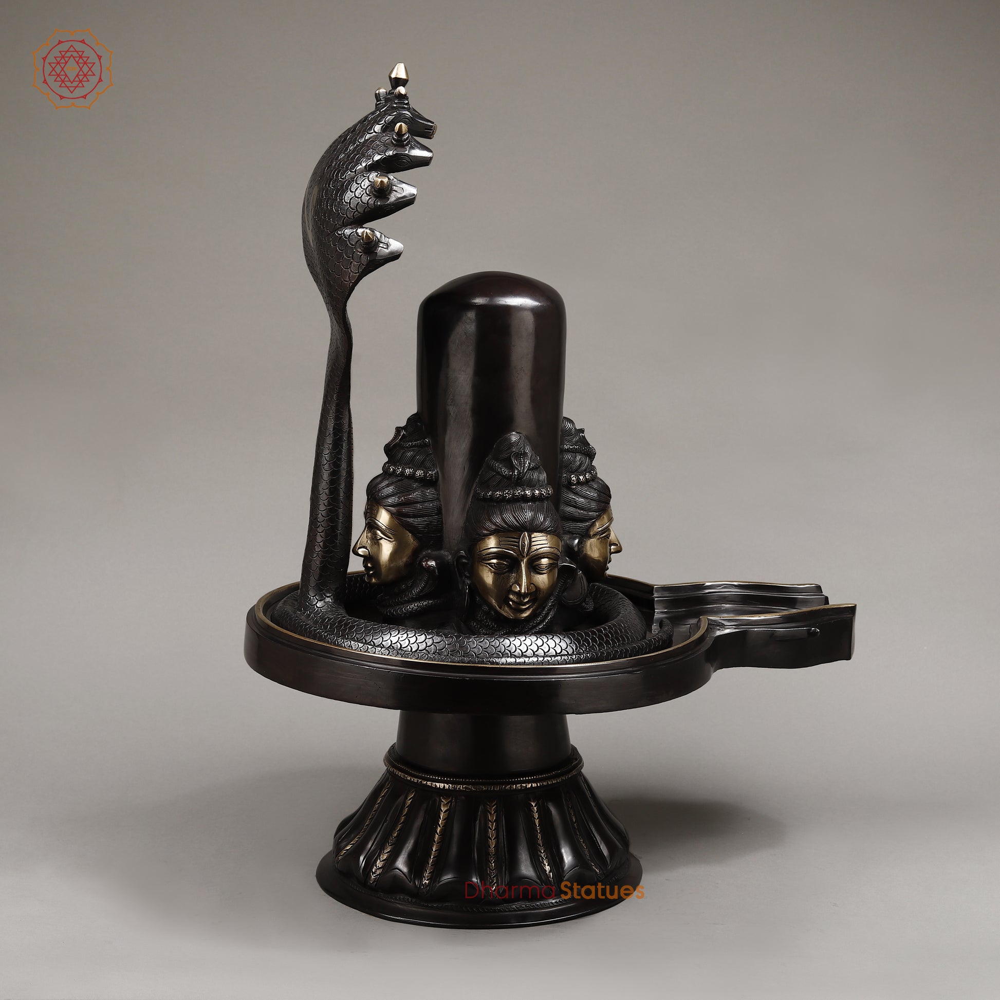 This 26" Brass Shivling with Snake features a stunning black patina and smooth finish for a unique and eye-catching design. Crafted from high-quality brass, it is not only beautifully decorative but also durable and long-lasting. Experience the elegant and intricate craftsmanship of this traditional Hindu ritual object.