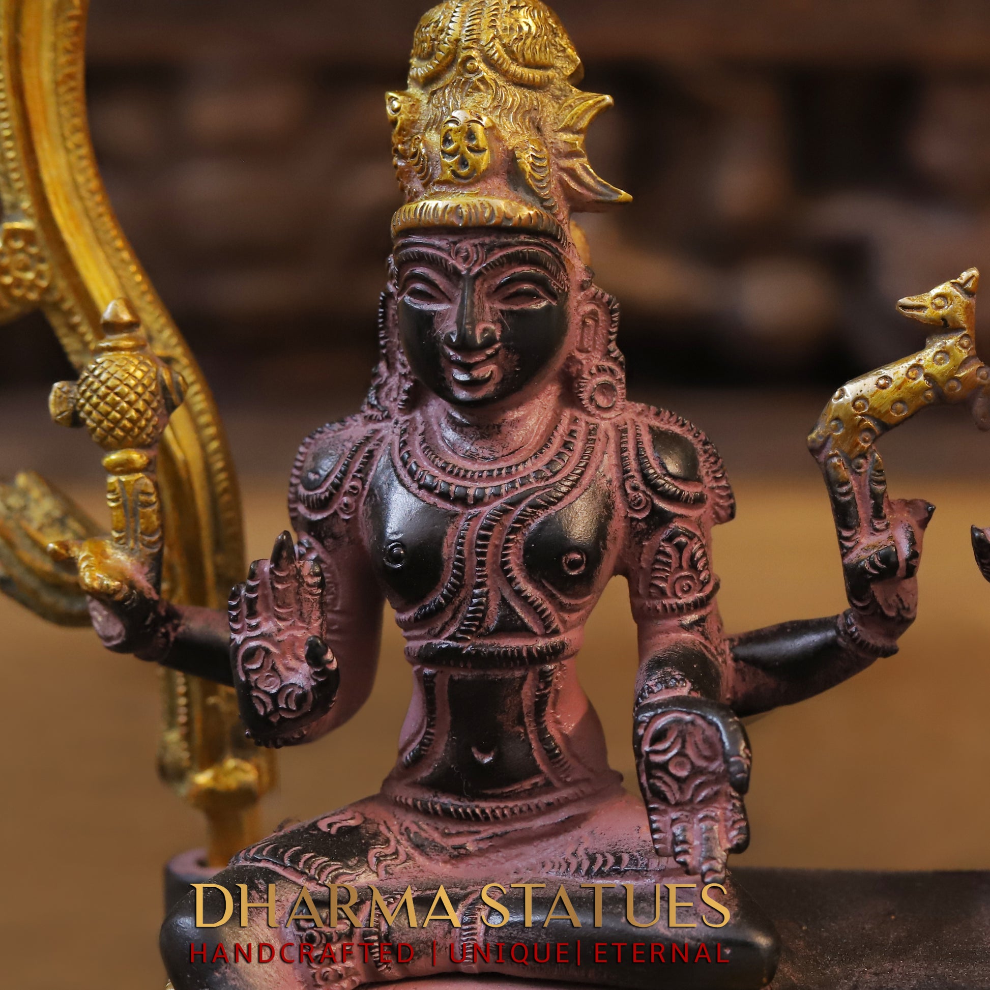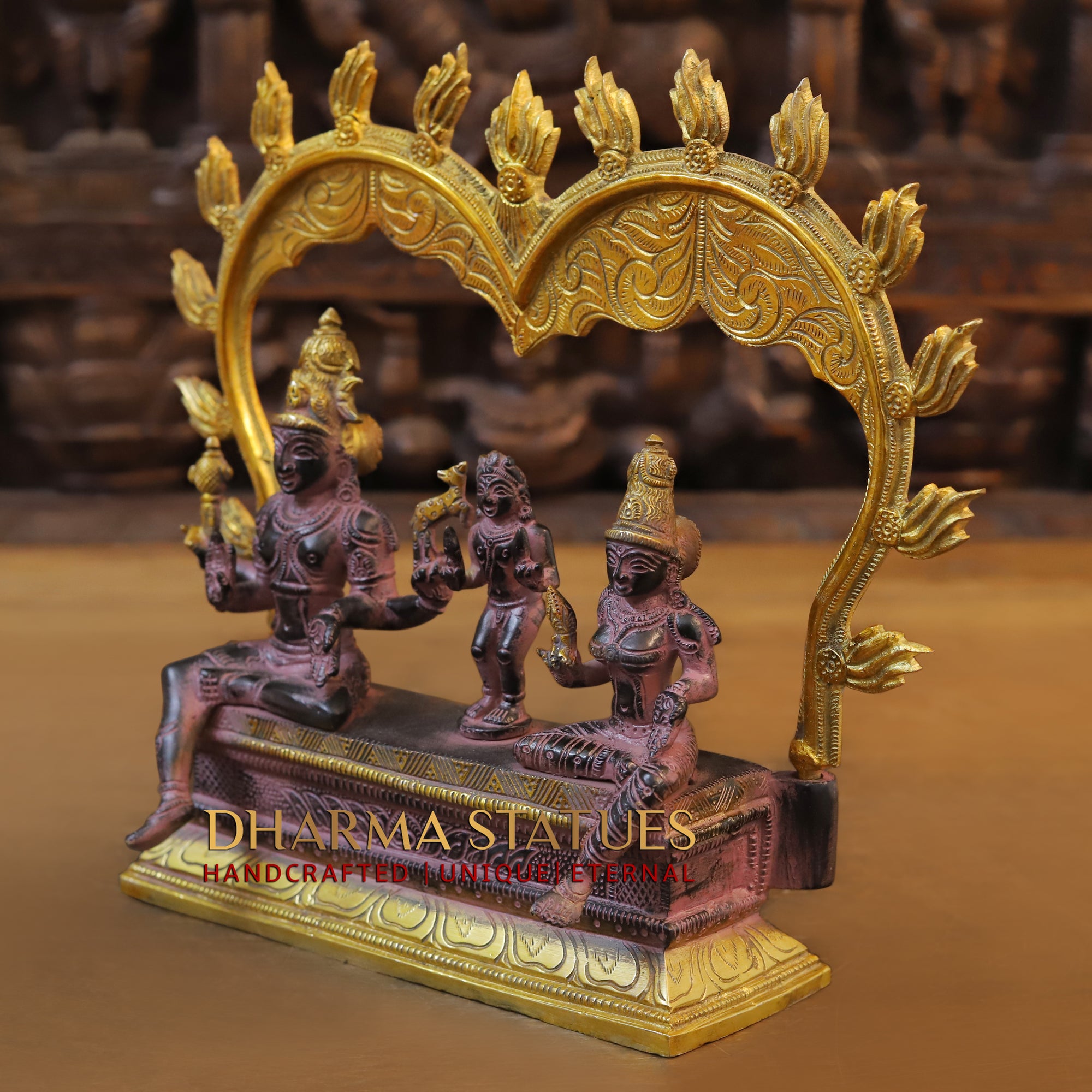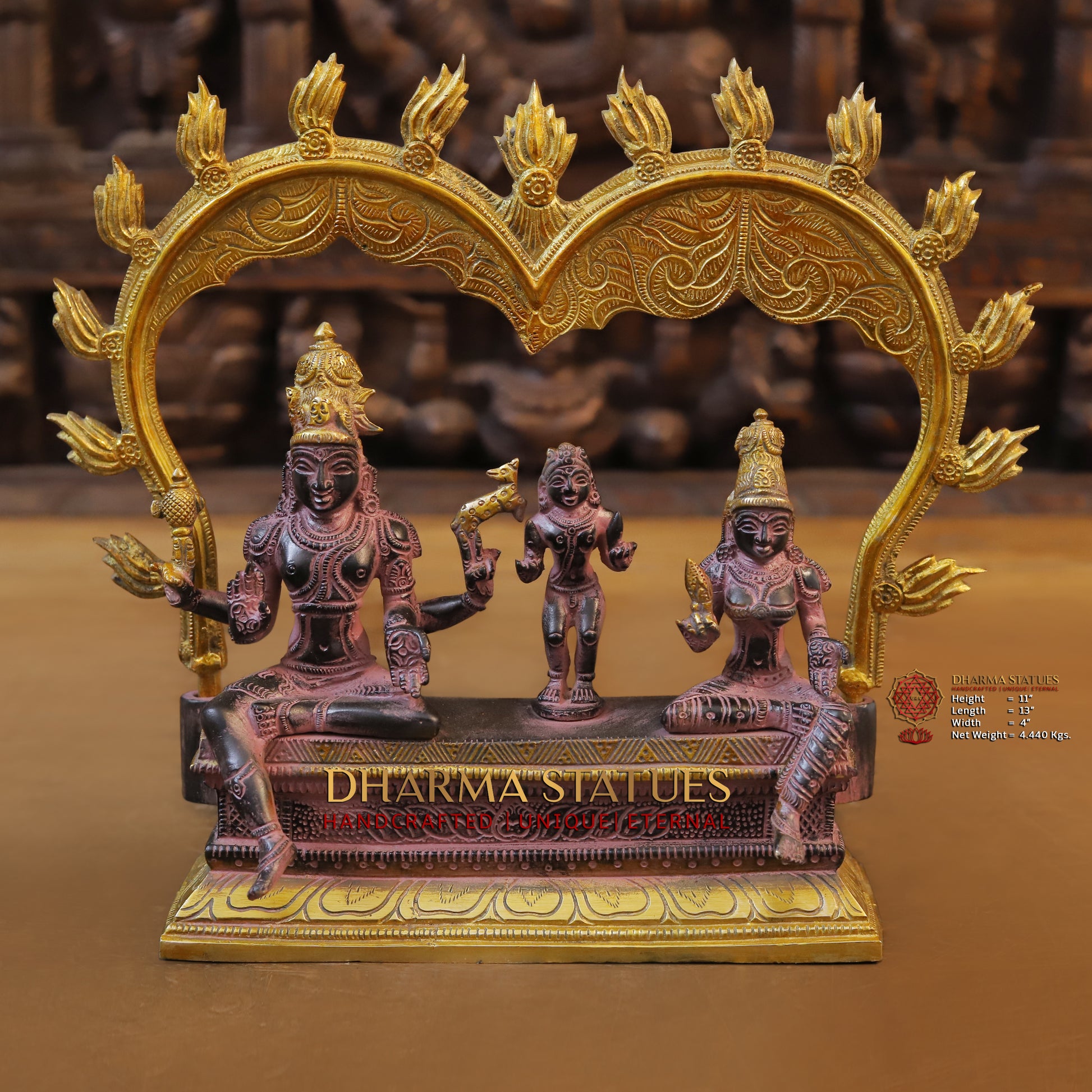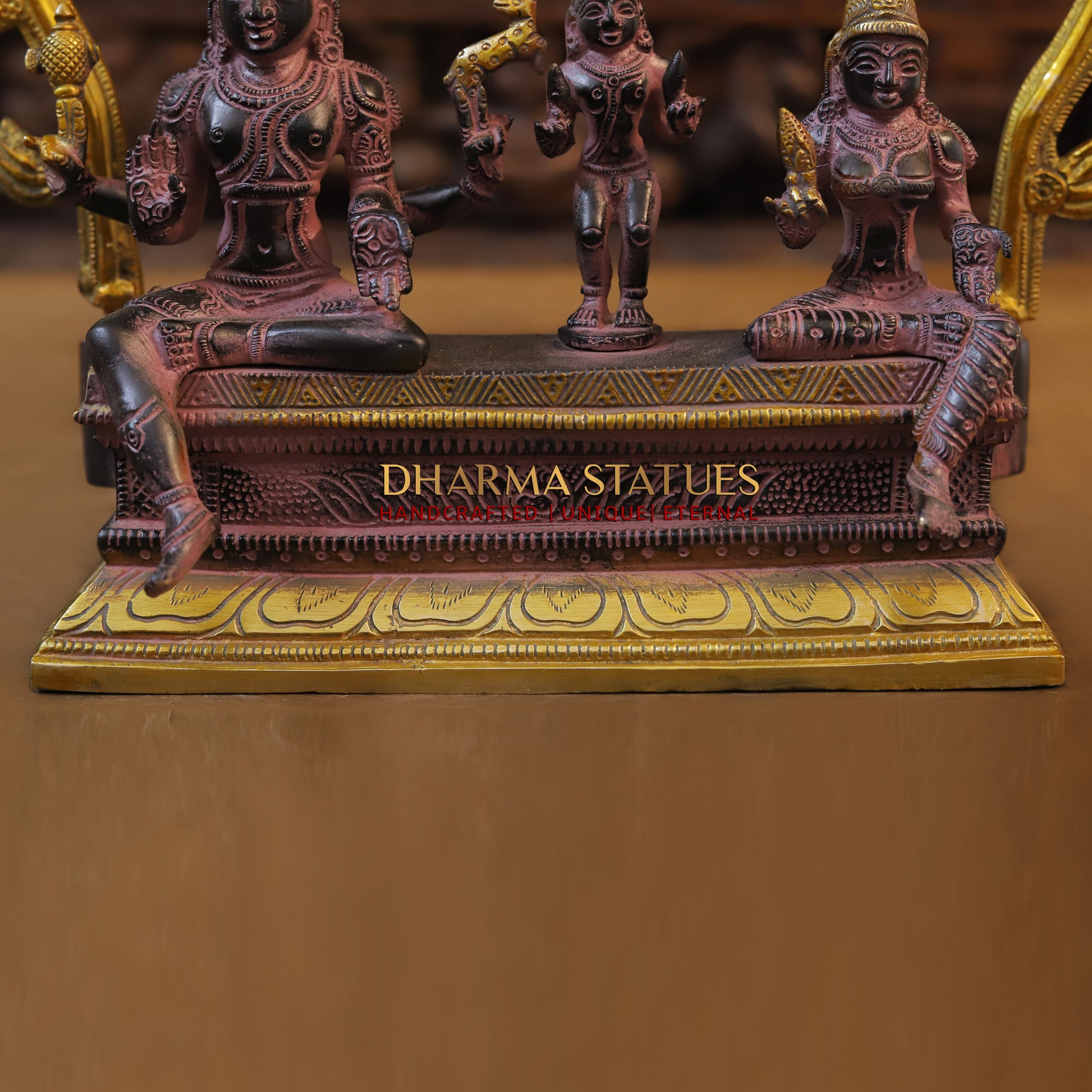 Expertly crafted, the Brass Somaskandar Panchaloha with Frame boasts a stunning purple and golden finish. Made from high-quality brass, this 11" statue is a beautiful addition to any home or spiritual space. Its unique design and intricate details make it a must-have for collectors or those seeking a sacred and divine atmosphere.