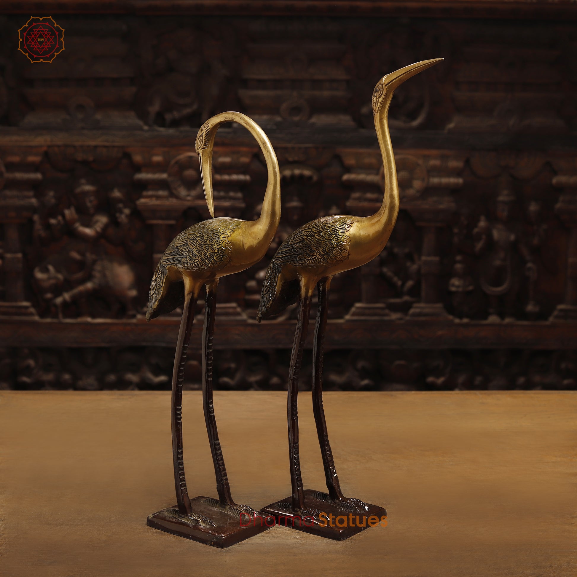Expertly crafted from brass, this pair of swans boasts a striking combination of golden and copper finishes. Standing at 19 inches tall, these elegant birds will bring a touch of sophistication to any space. Add a touch of luxury to your home with this beautiful and timeless decoration.