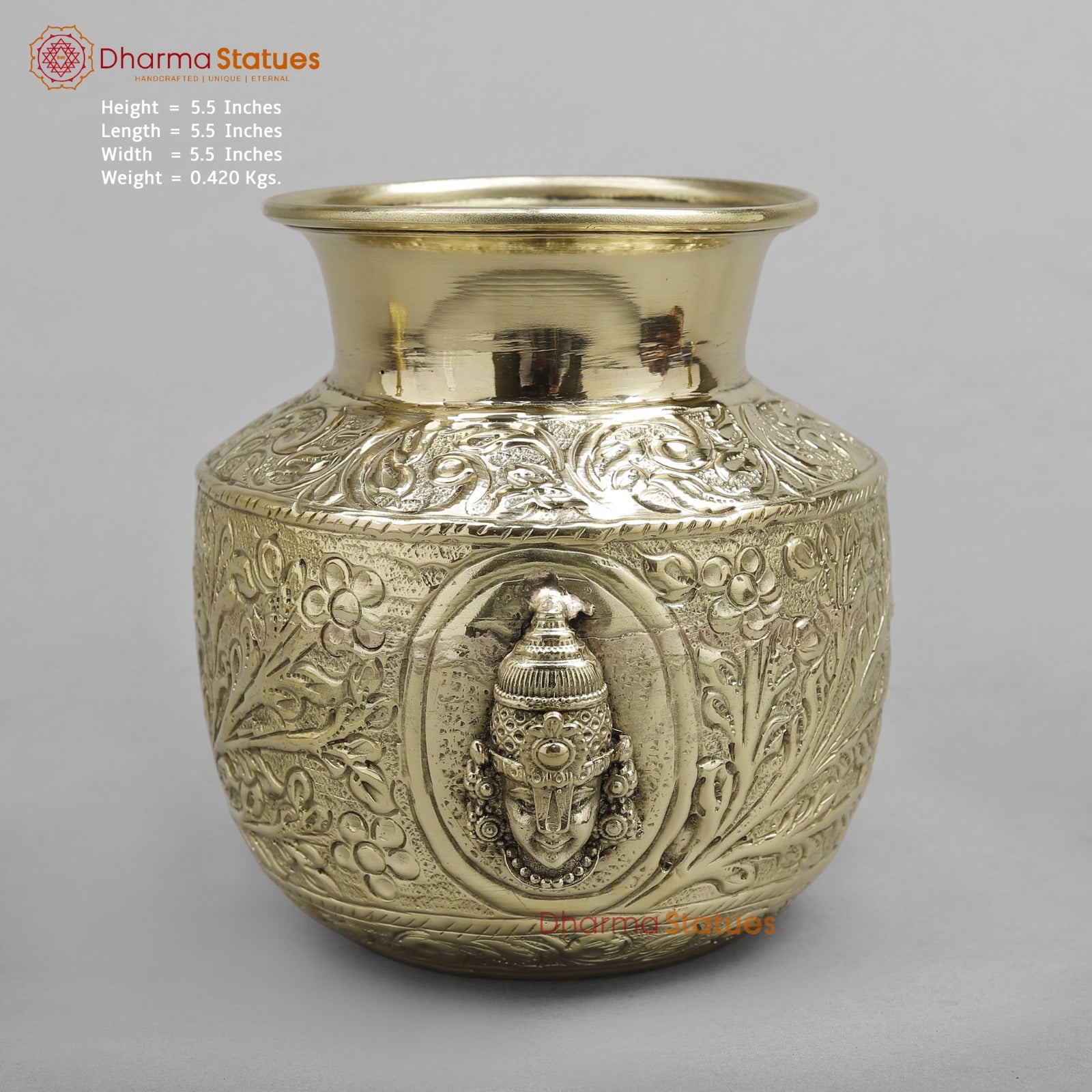 Brass Tirupati Balaji Kalash Fine finish 5.5”