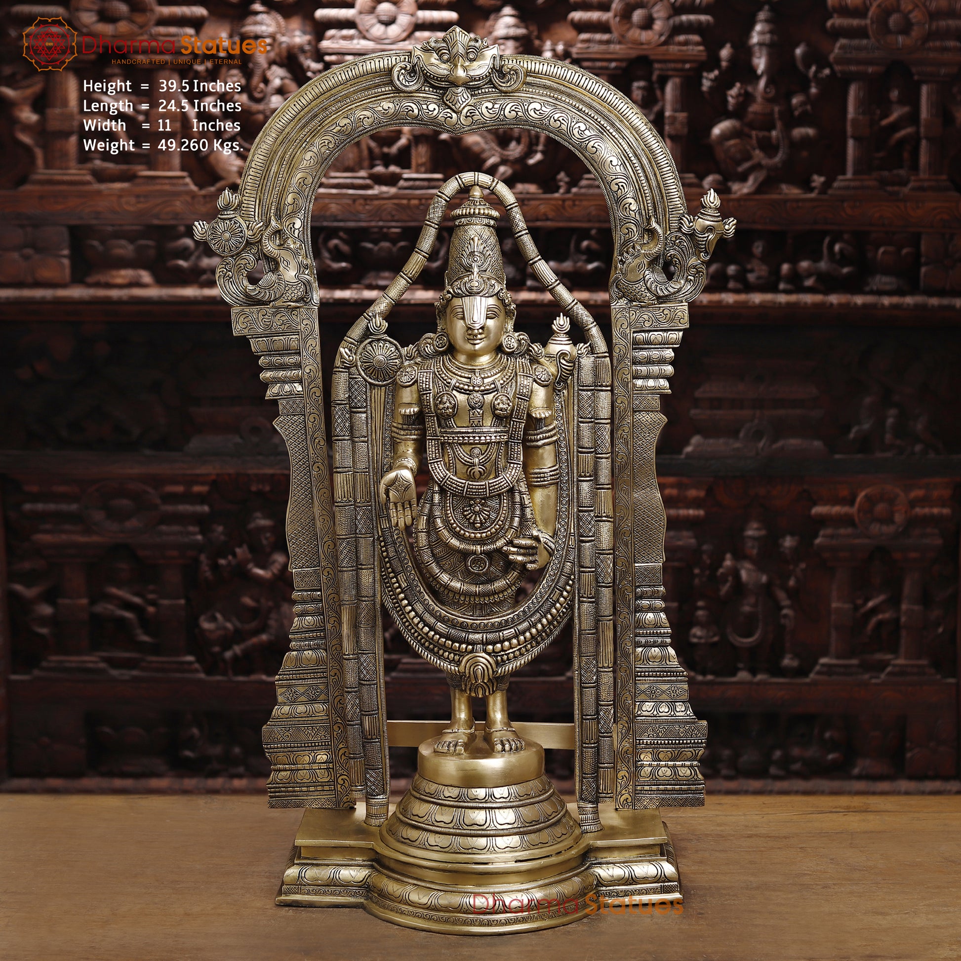 Expertly crafted from brass and adorned in special gold, the Brass Tirupati Balaji statue stands at 39.5 inches tall. Revered for its intricate design and cultural significance, this statue is a beautiful addition to any home or sacred space. Honor and invite blessings from the deity with this exquisite piece.