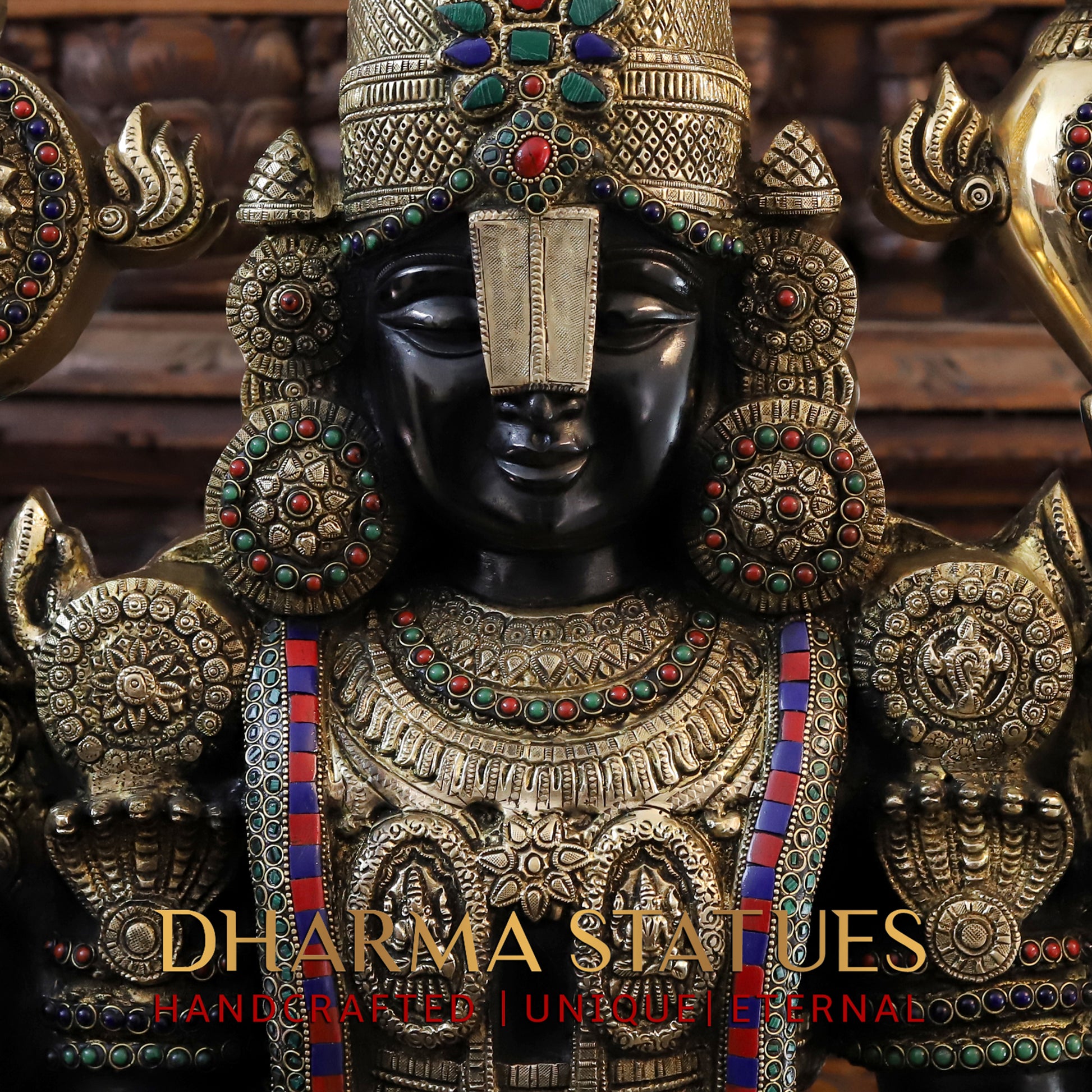 Brass Tirupati Balaji, Stonework with Black Patina & Golden Finish, 47"