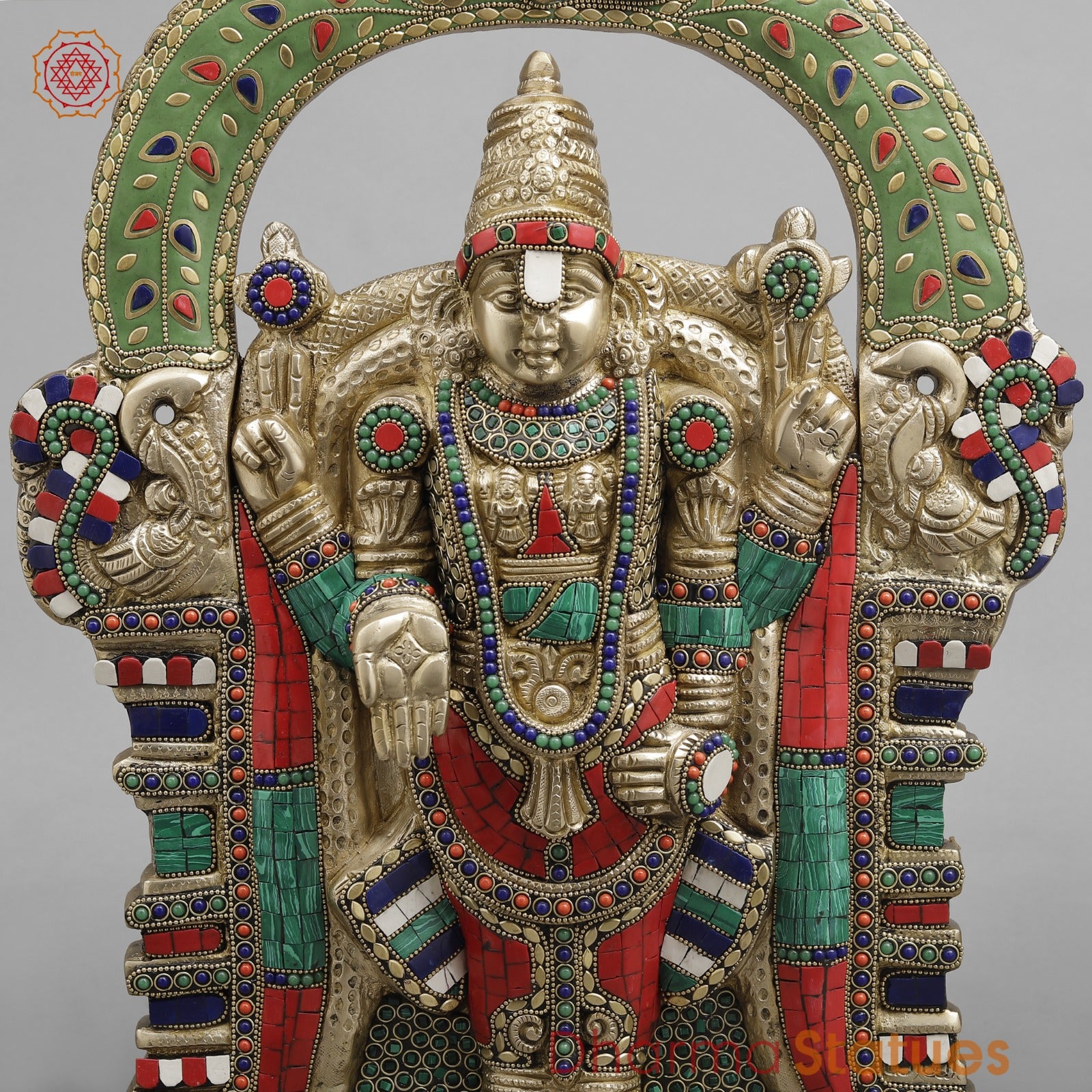 Brass Tirupati Balaji wall Hanging Plate, Fine stone work 20”