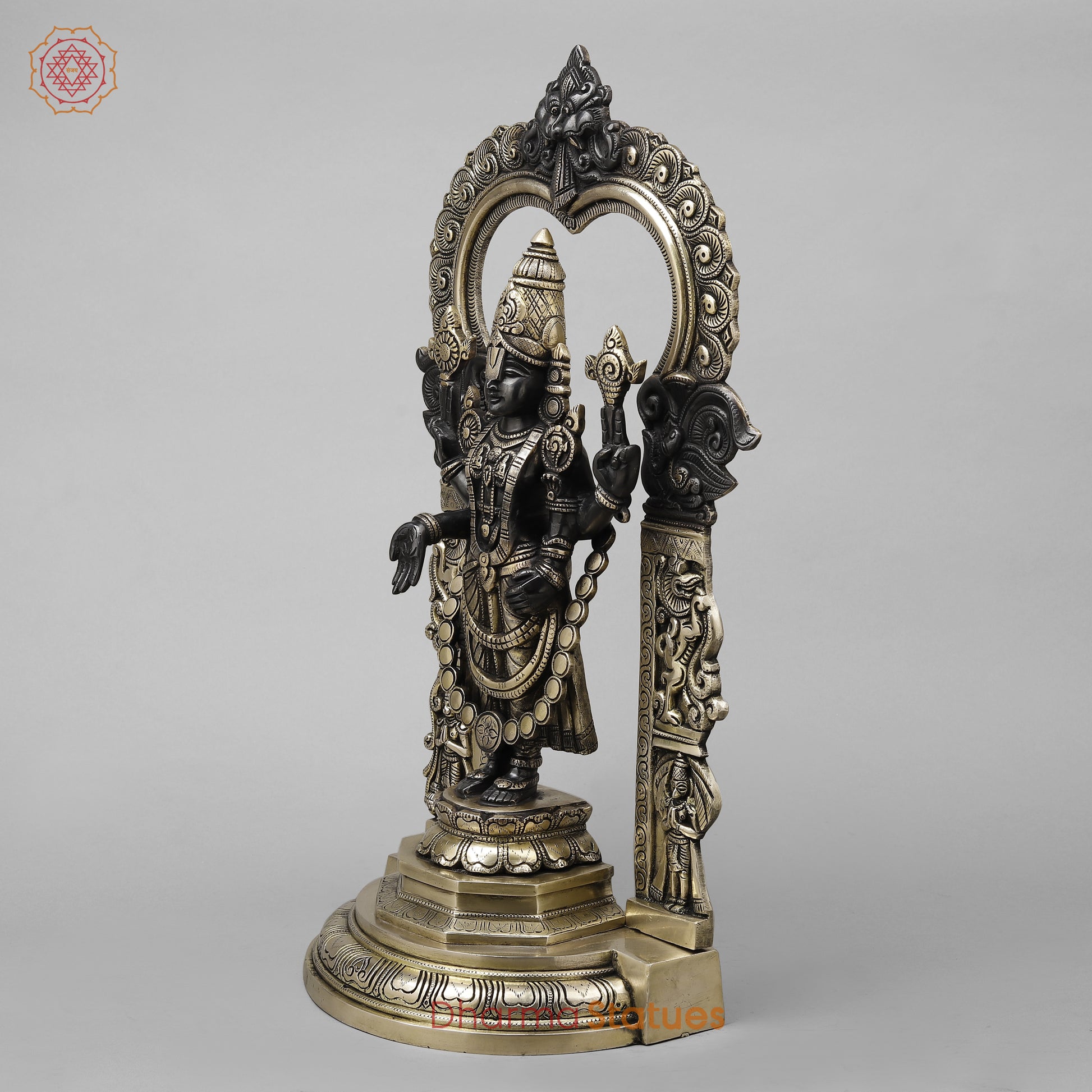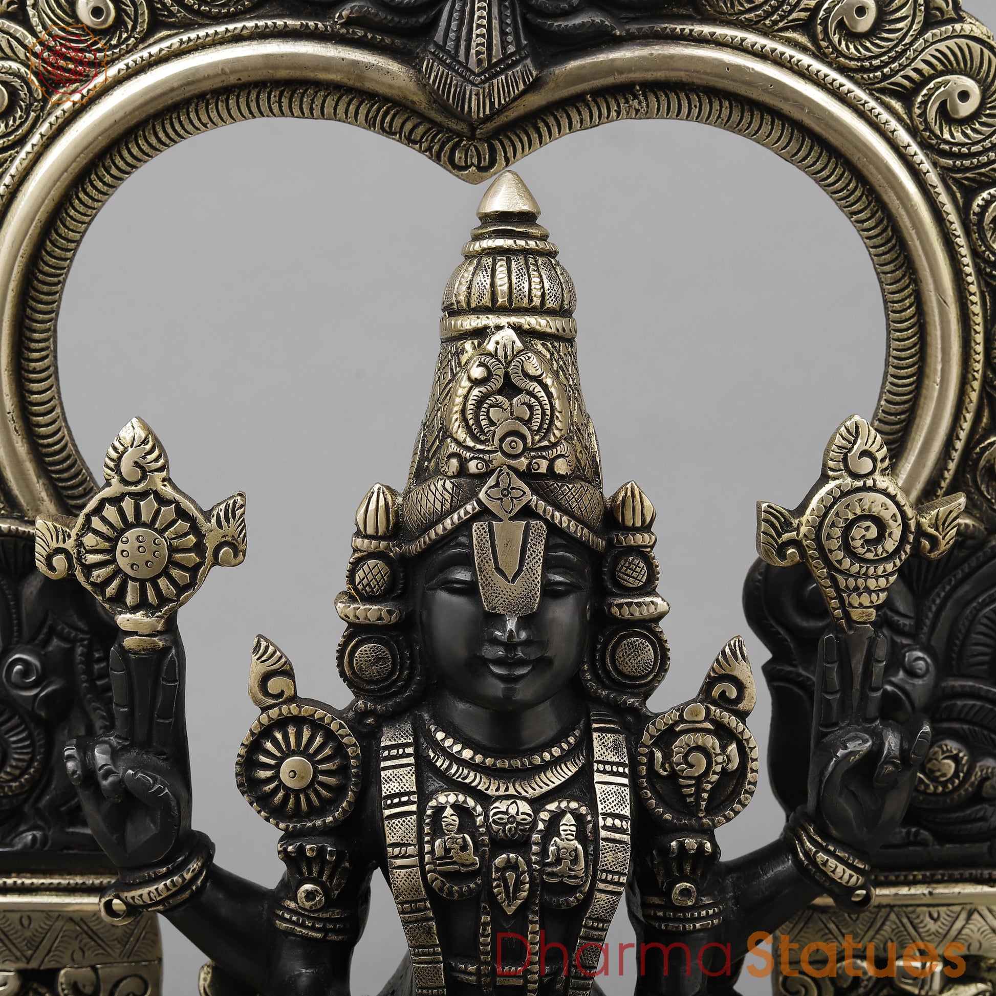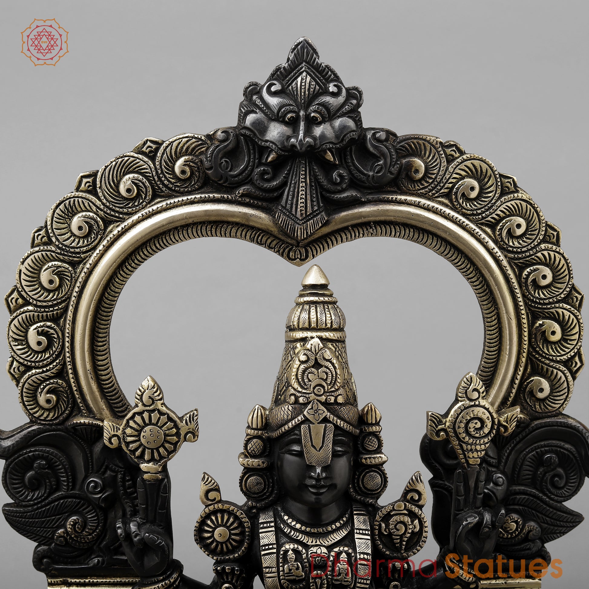 Brass Tirupati Balaji with Frame, Black Patina & Smooth Finish, 22"