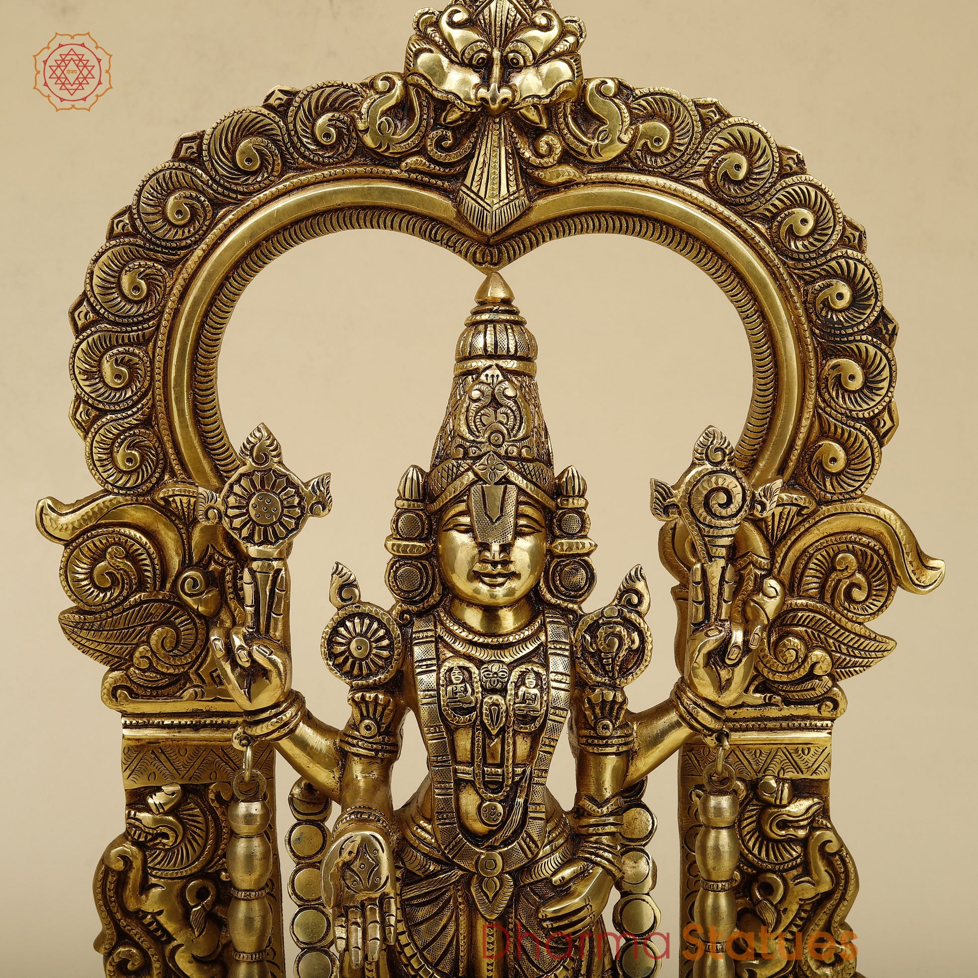 Brass Tirupati Balaji with Frame, Fine Golden Finish, 22"