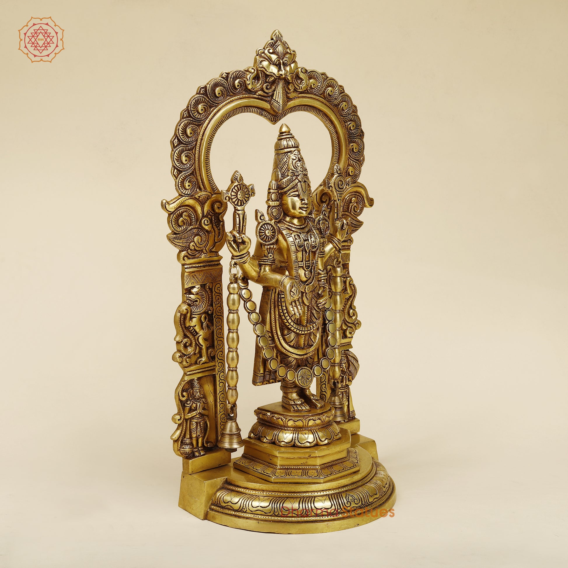 This Brass Tirupati Balaji with Frame is expertly crafted with a fine golden finish, making it a stunning addition to any space. The 22" size adds a touch of grandeur to its intricate design. Showcasing traditional craftsmanship, this piece is a perfect blend of beauty and elegance.