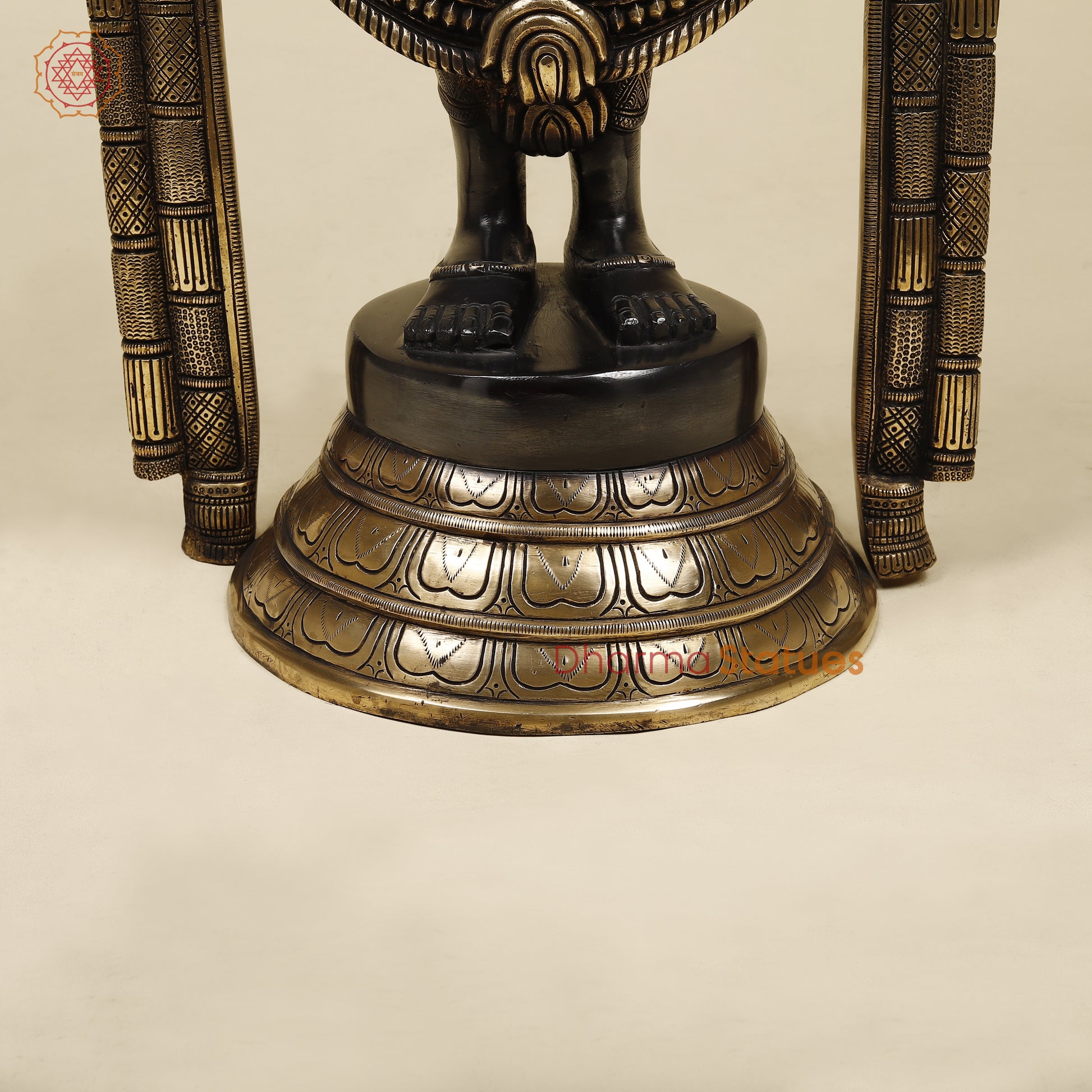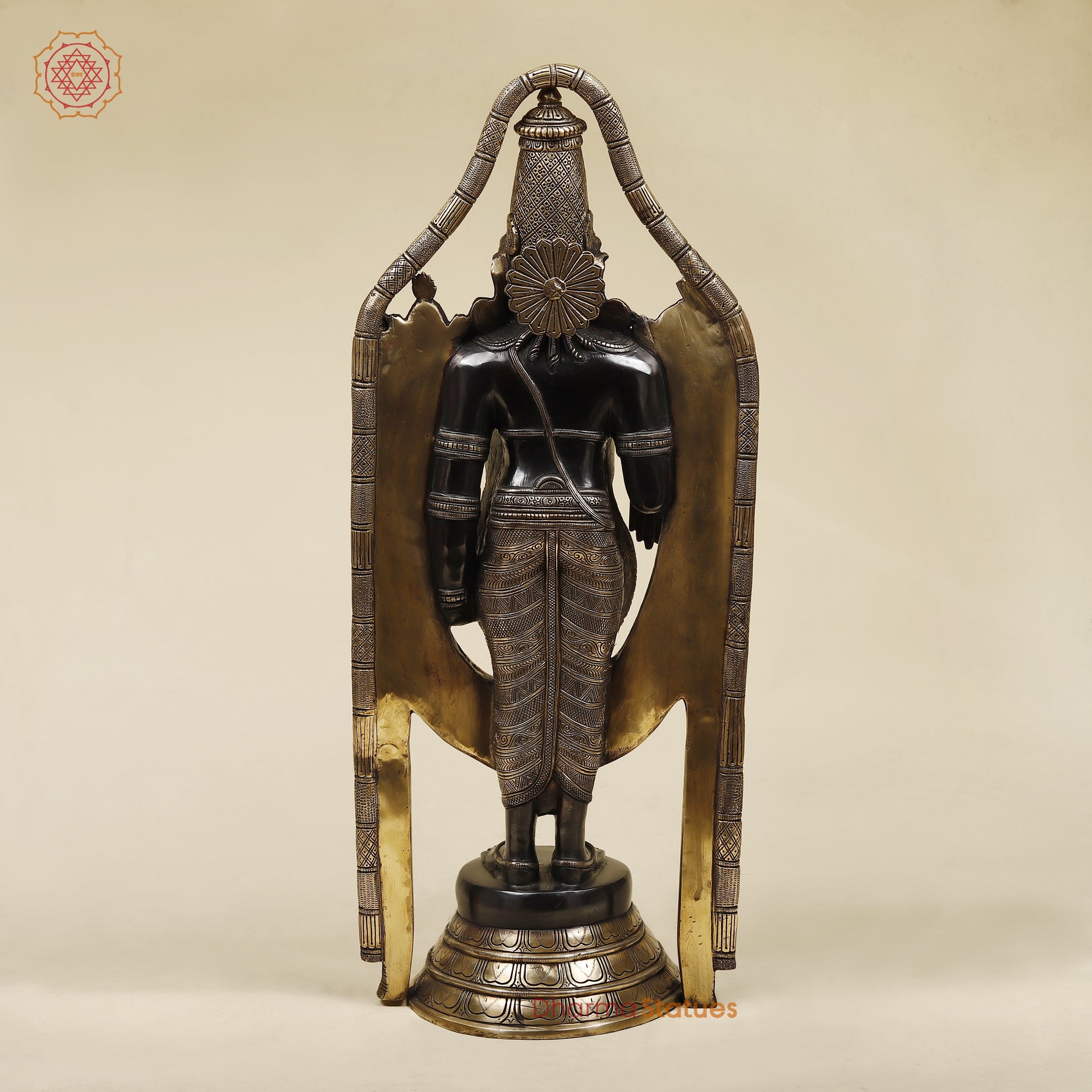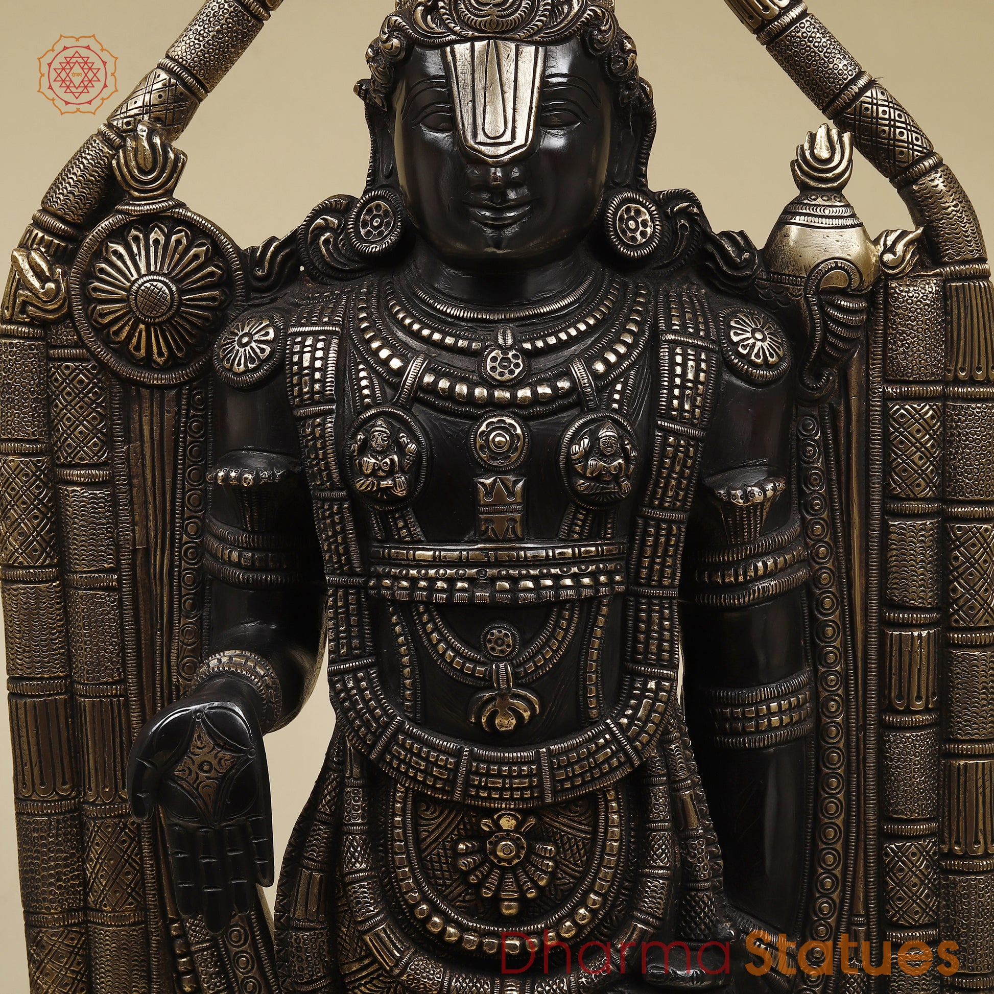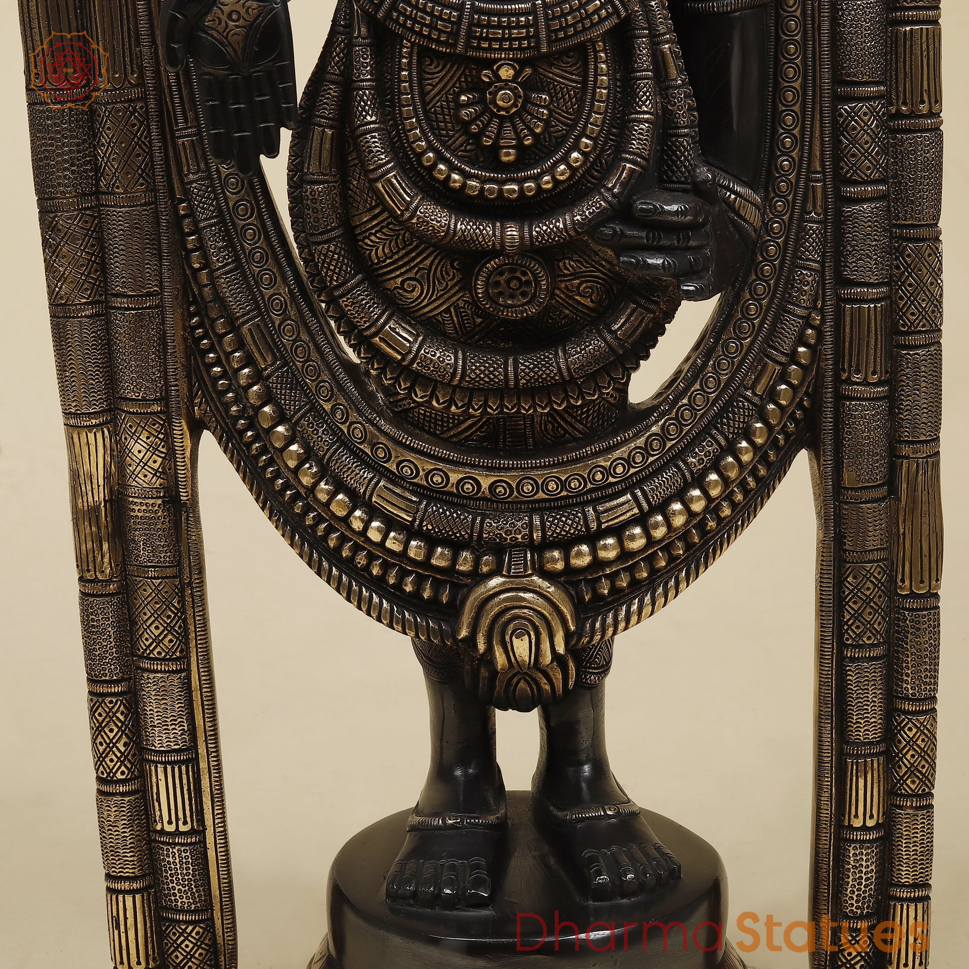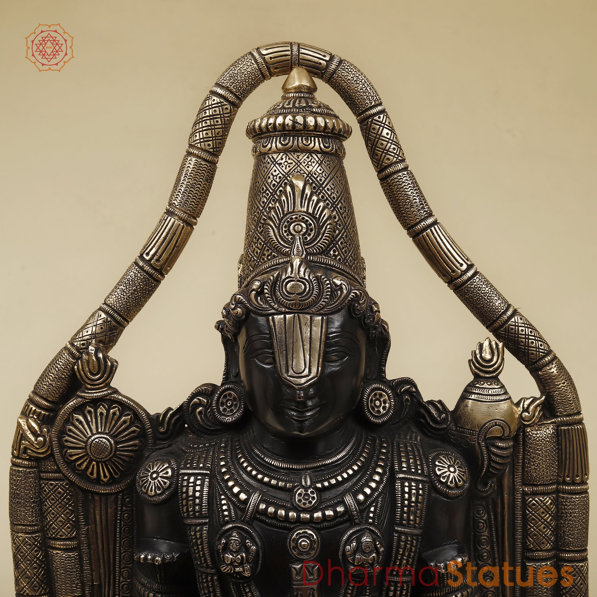 This intricately crafted brass figurine of Tirupati Balaji is a symbol of prosperity and devotion. The fine golden finish exudes elegance and the 30" frame adds a touch of grandeur. Perfect for home decor or as a religious gift, this piece is sure to bring blessings and grace into any space.