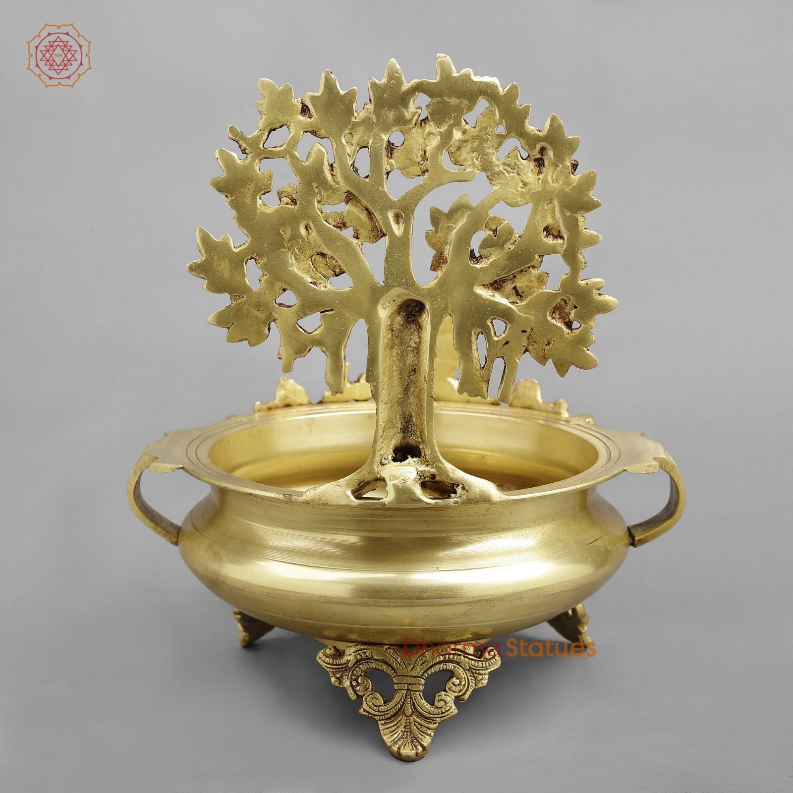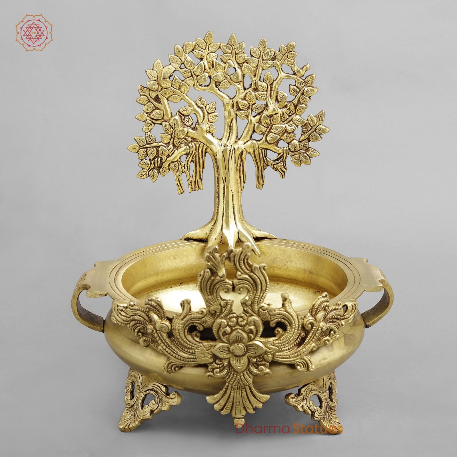 A beautifully handcrafted Brass Tree Urli with a rich golden finish, featuring an elegant tree motif symbolizing growth, prosperity, and harmony. Finely detailed with ornamental legs and side handles, this urli is perfect for floating flowers, diyas, or water décor. Ideal for pooja rooms, entrances, festive décor, or luxury interiors, it adds a touch of tradition, positivity, and timeless elegance to any space.