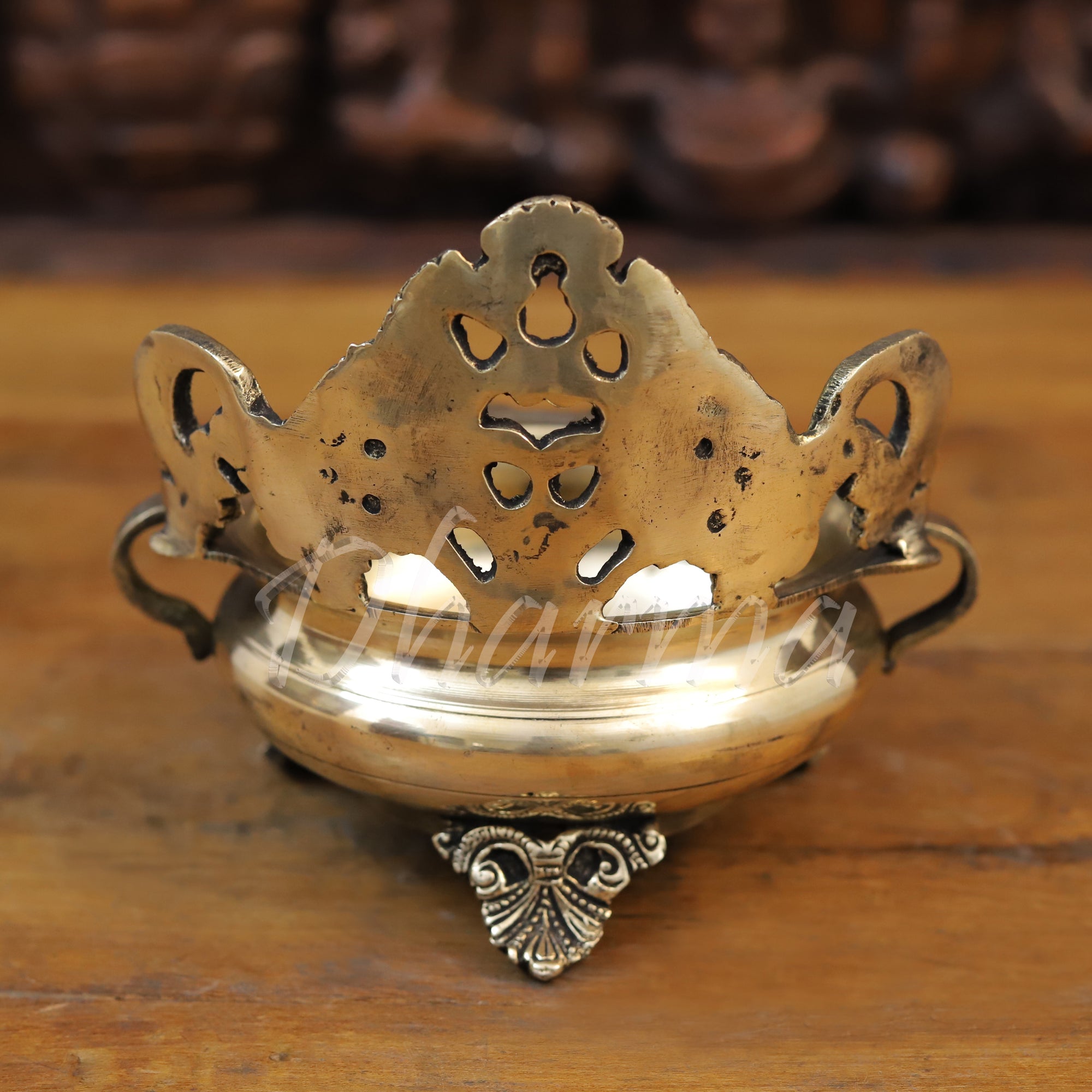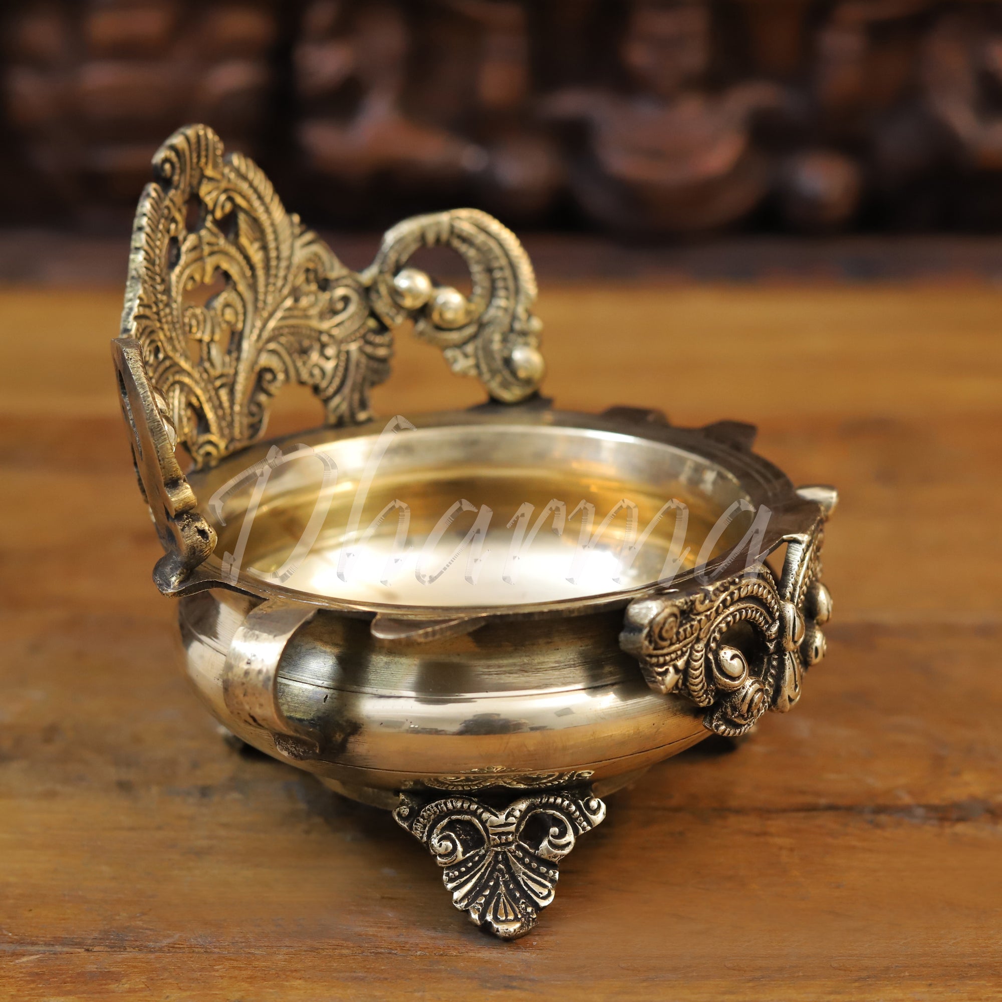 A beautifully crafted brass urli with a fine golden finish. This traditional decorative bowl features intricate patterns and a polished surface, adding a touch of elegance to any setting. Ideal for floating flowers or candles, it enhances the ambiance with its classic charm and timeless appeal. Perfect for festive or everyday deco. Best for Wedding Gift | Diwali Gift | Gift purpose | Temple | worshipping | Perfect for Home decoration | Office decoration.