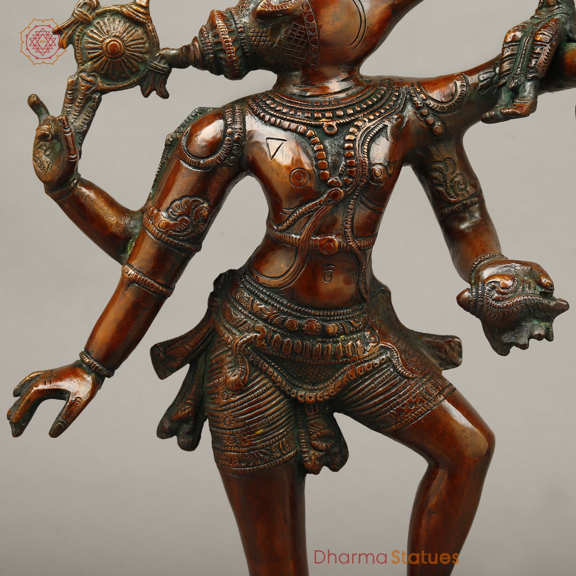 This beautifully crafted Brass Varahi Devi Idol, finished with a rich copper patina, showcases the fierce and protective form of Goddess Varahi, one of the seven Matrikas in Hindu mythology. Known for her power and strength, Varahi is depicted with the face of a boar, symbolizing her role as a protector against evil forces. The copper finish adds a warm, earthy tone, enhancing the intricate details of her posture, weapons, and divine attributes. This idol radiates divine energy, making it a powerful and sacred piece for any altar, temple, or spiritual space, inviting protection, strength, and blessings into your home.