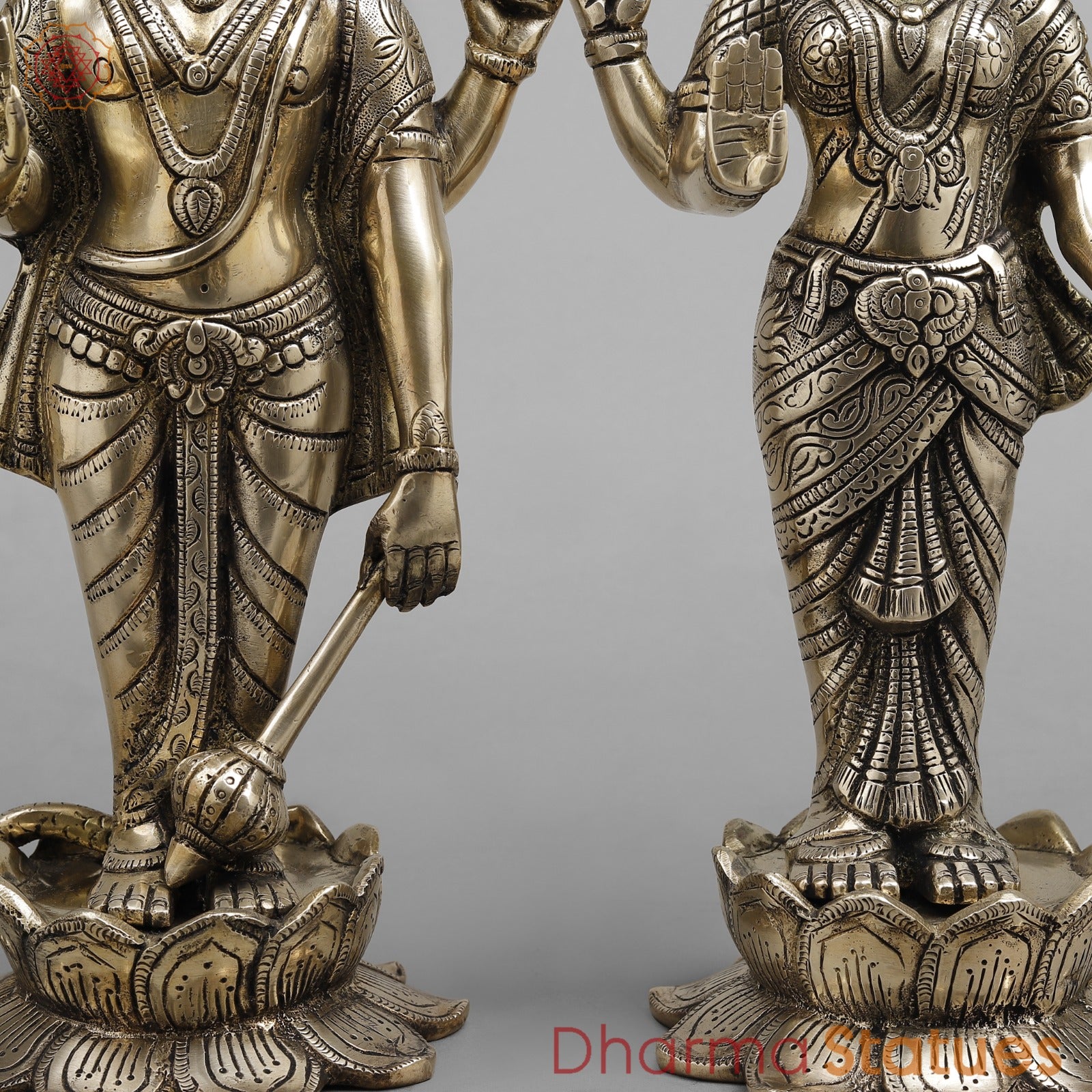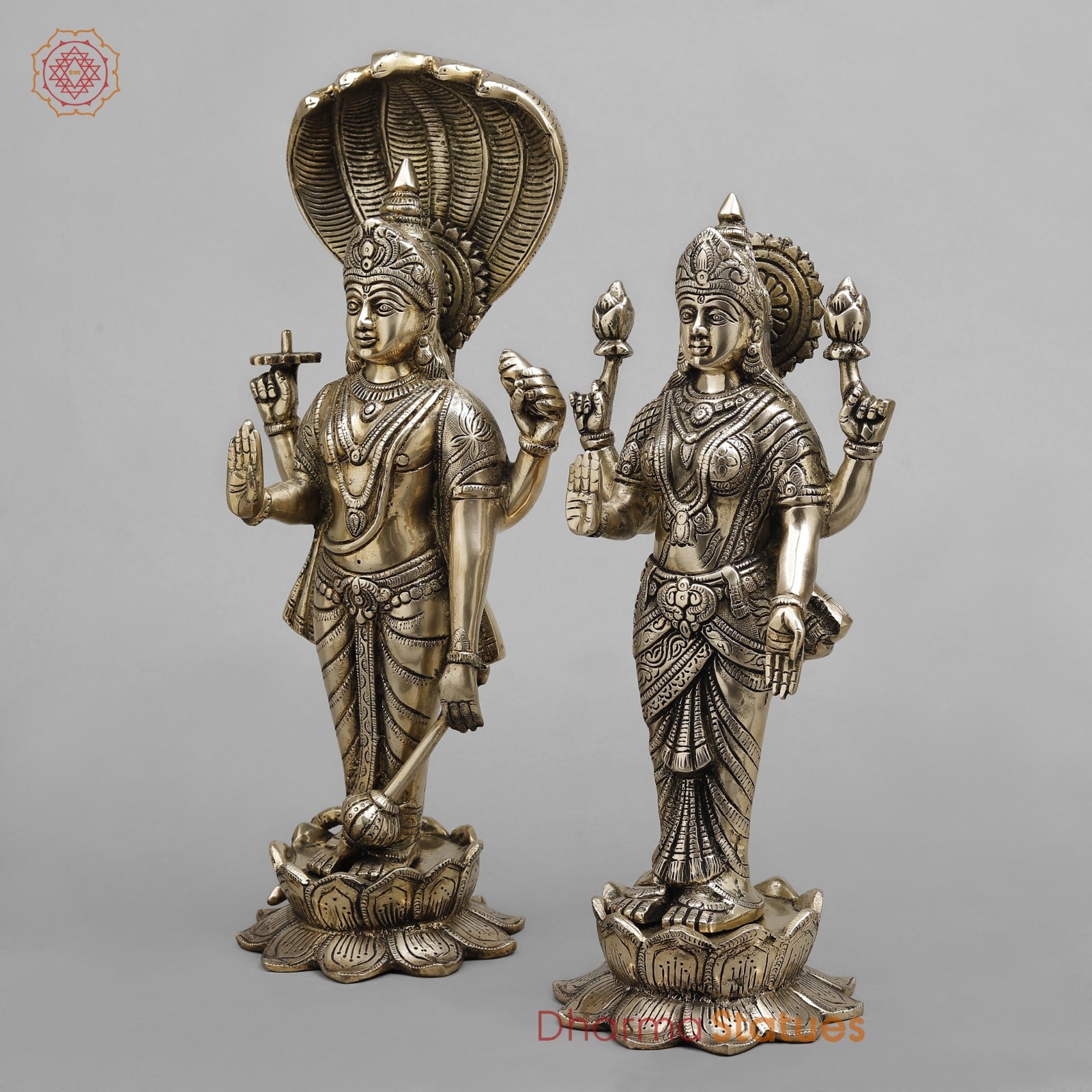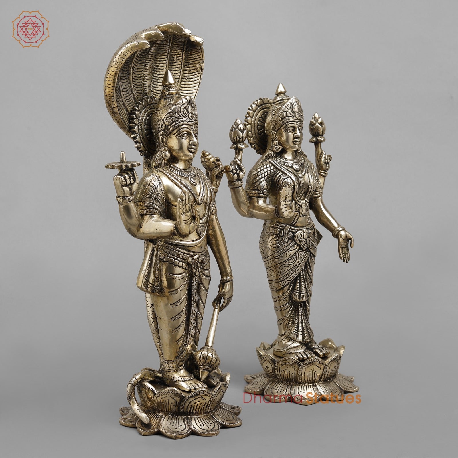 This elegant handcrafted brass Vishnu–Lakshmi statue set features fine detailing with a classic antique finish. Symbolizing prosperity, protection, and divine balance, it is ideal for home temples, spiritual décor, or auspicious gifting.