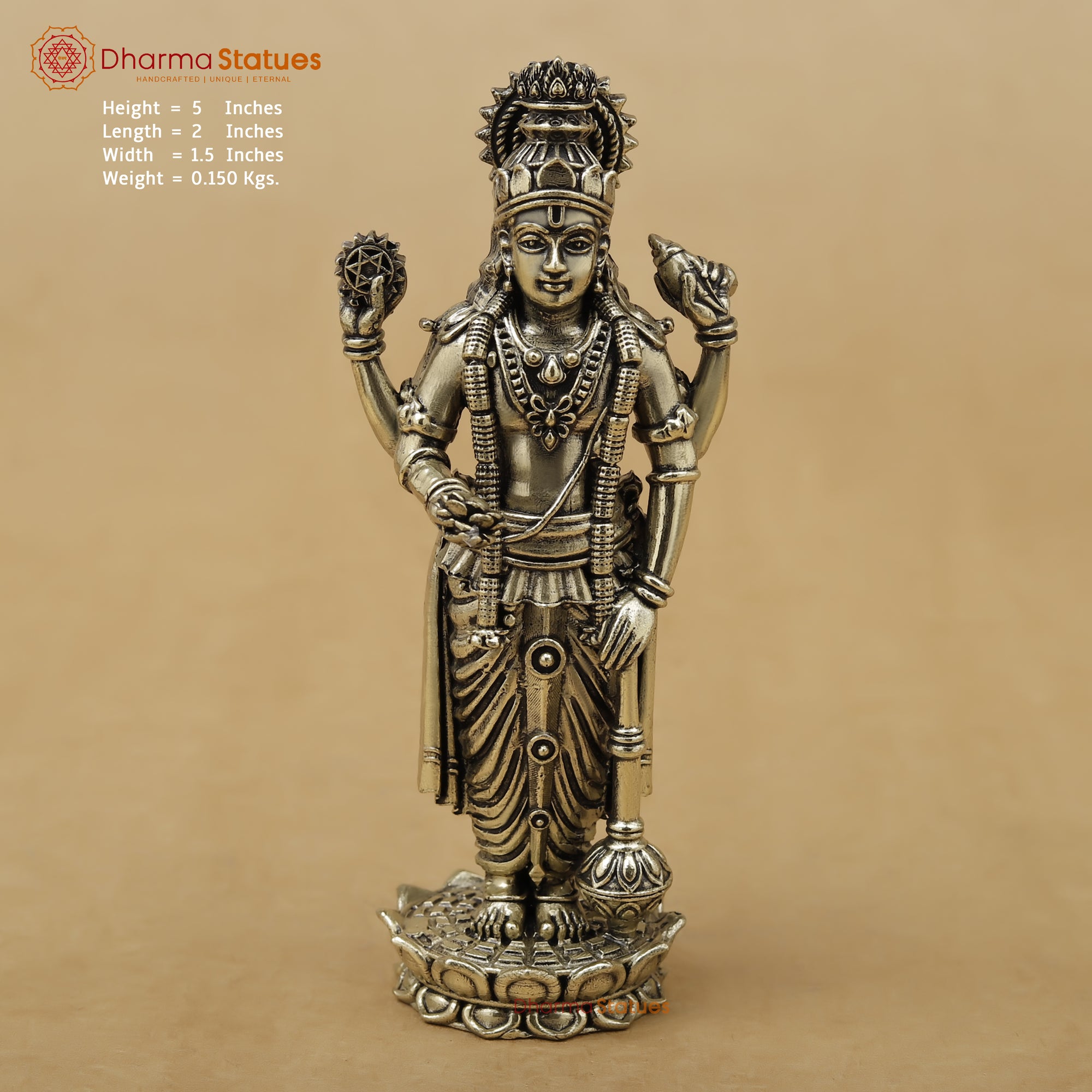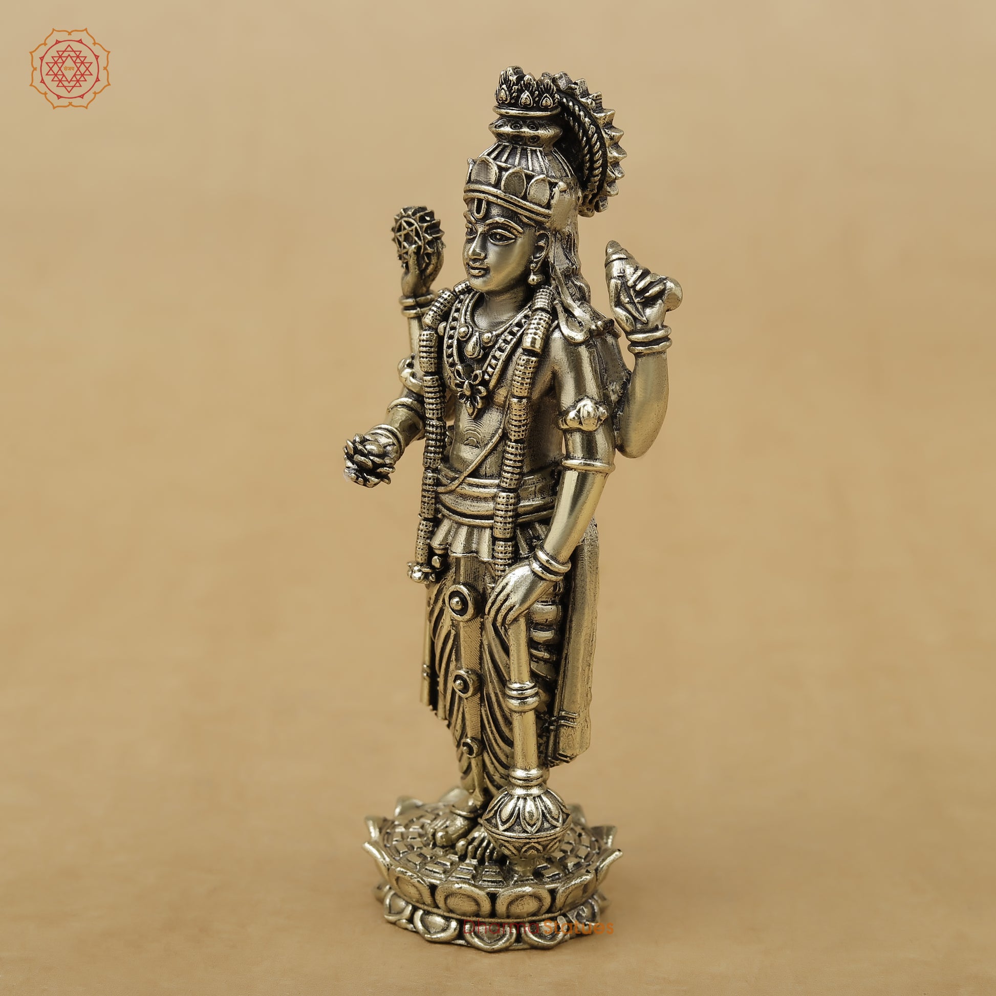 Bring divine protection and harmony into your space with this beautifully crafted Brass Lord Vishnu Statue. Finely casted to capture intricate details, the idol features Vishnu standing gracefully with his traditional symbols—Shankha, Chakra, Gada, and Padma. The antique brass finish adds an elegant touch, making it perfect for puja rooms, décor corners, or gifting.