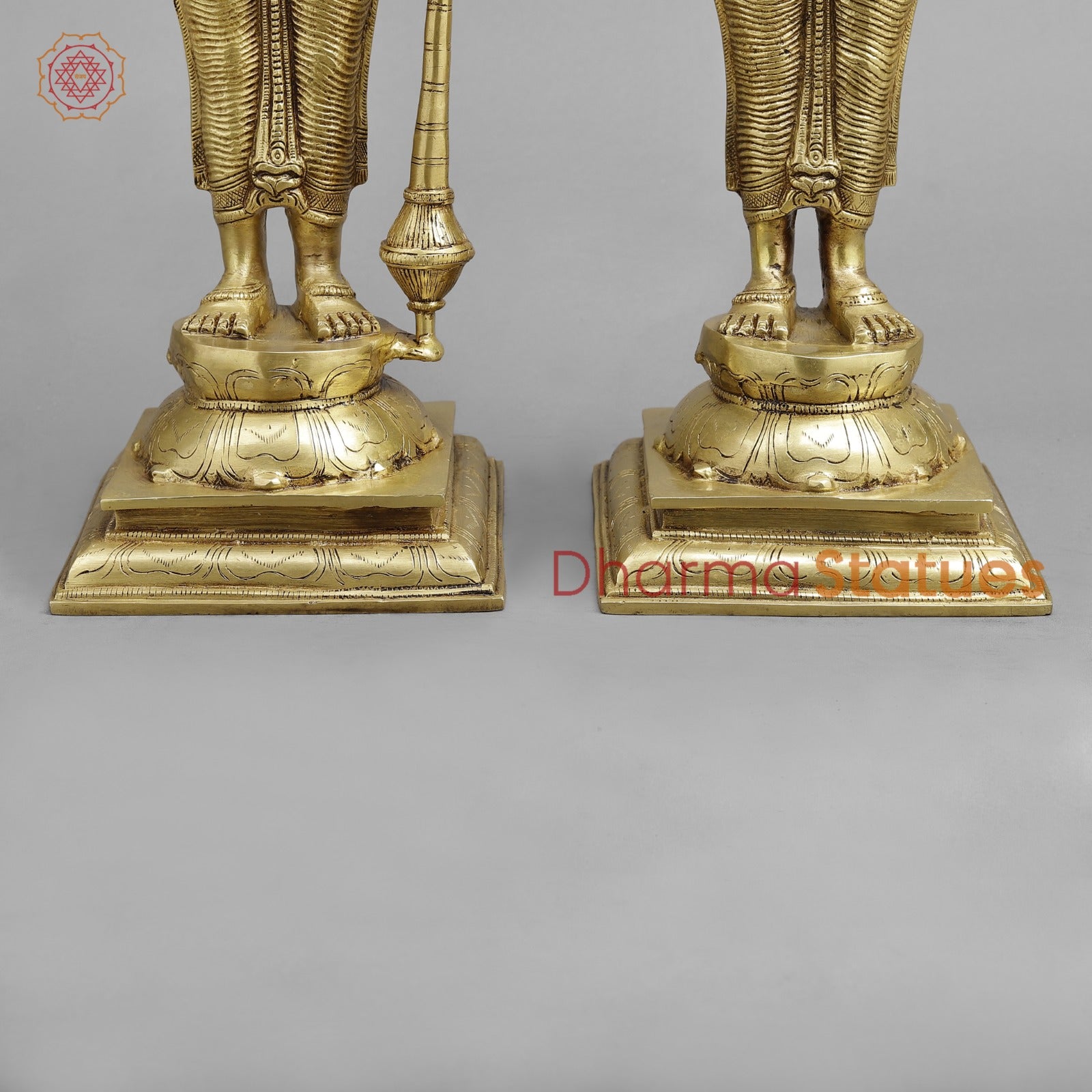 Brass Vishnu Lakshmi Standing, Golden Finish 20”