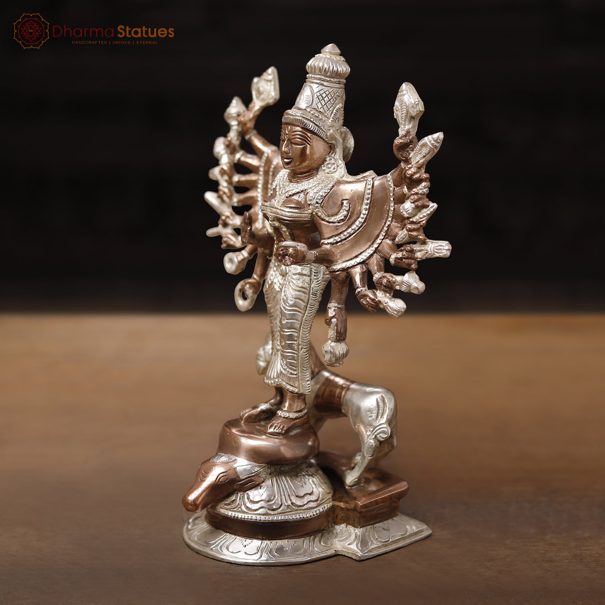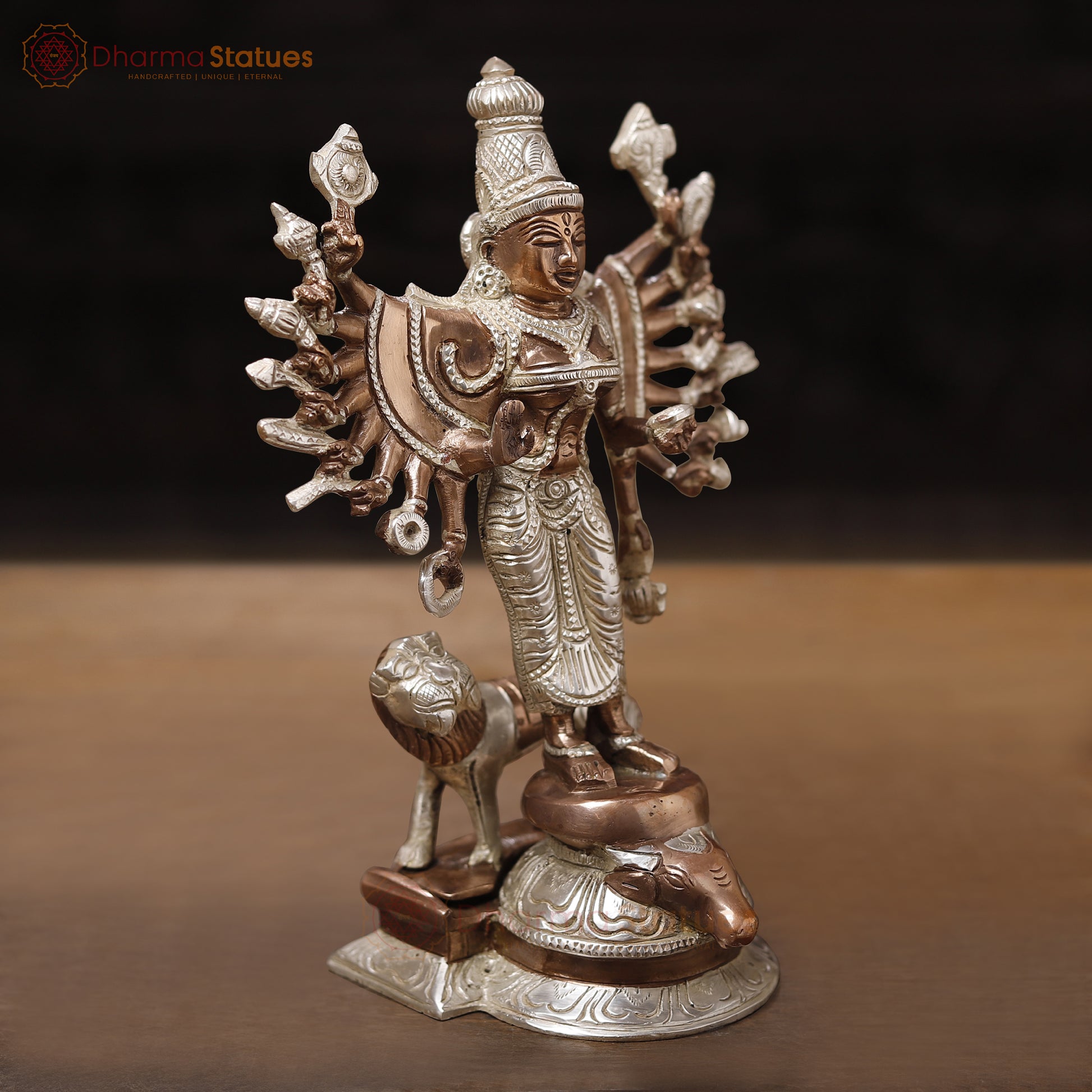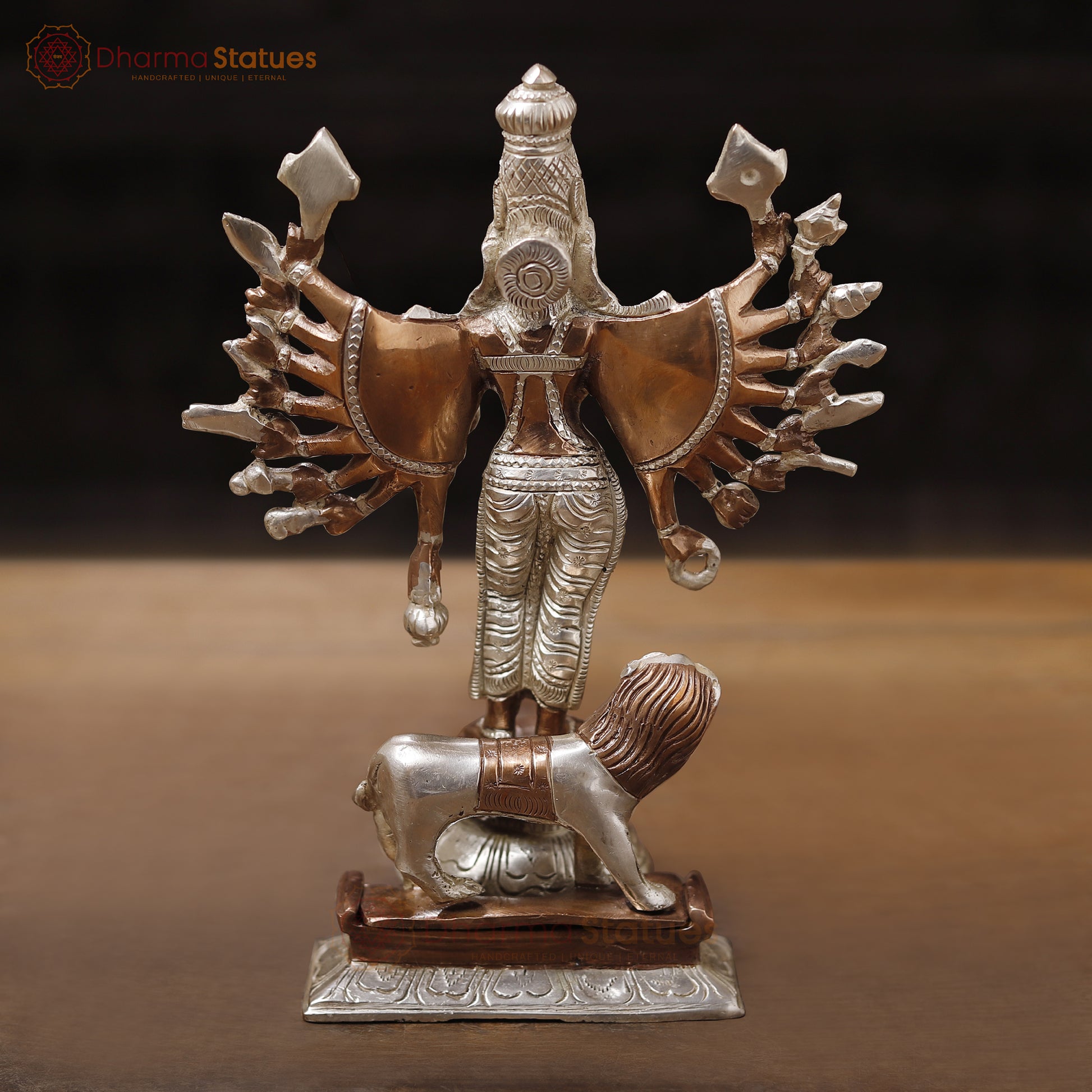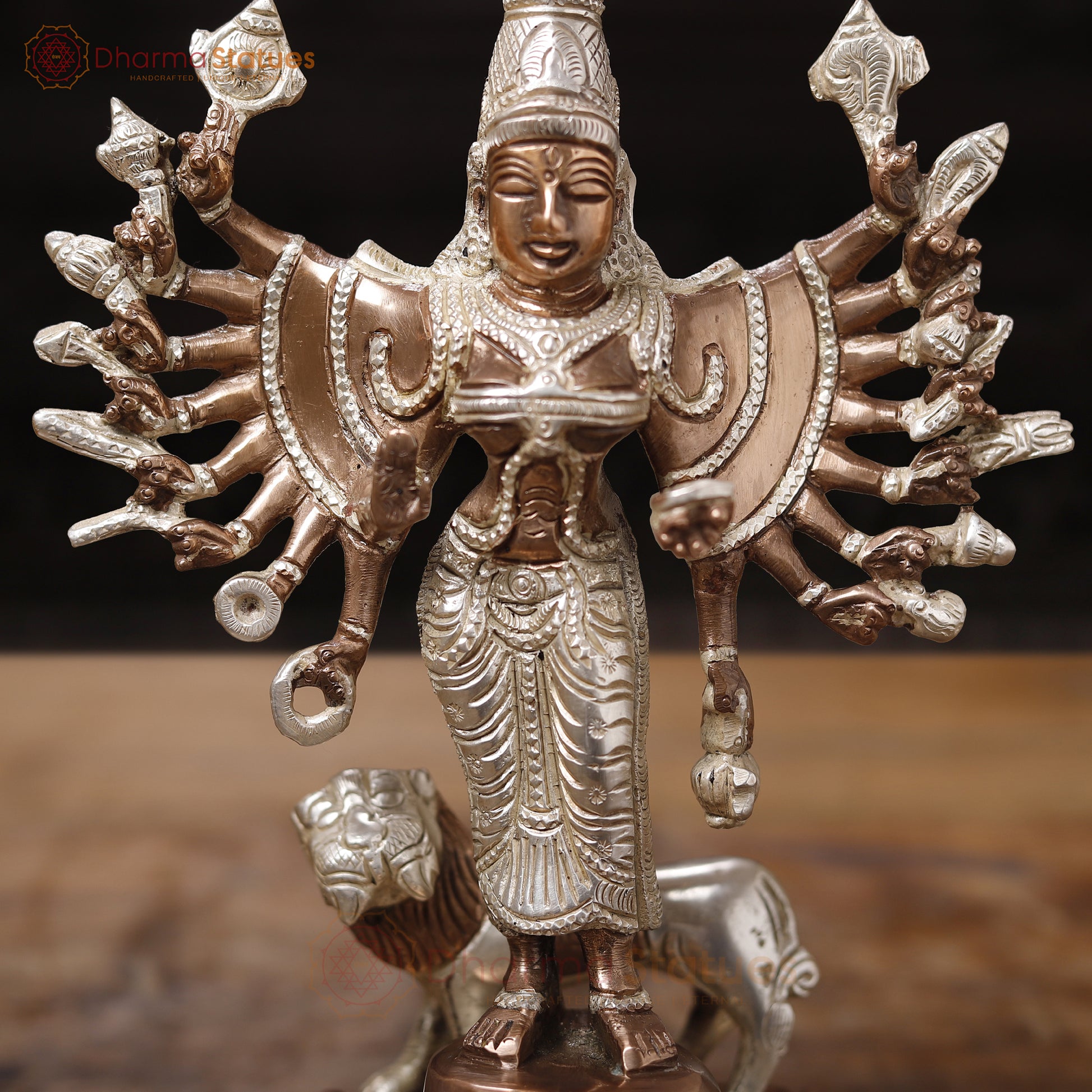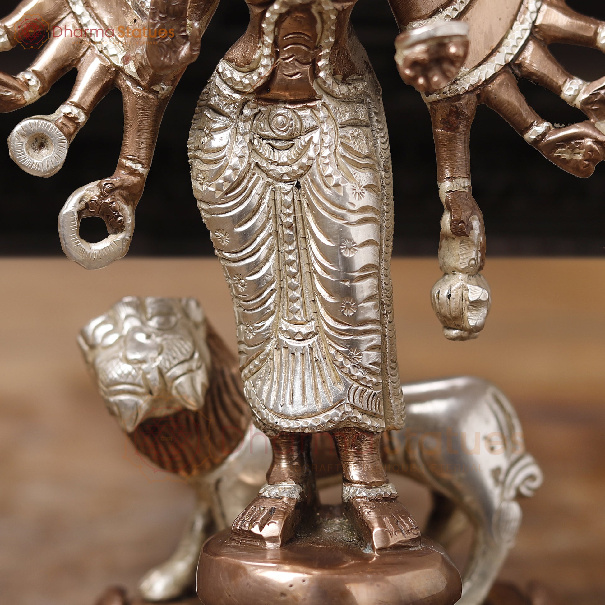 Brass Standing Durga (Bhogashakti), Exquisitely Handcrafted in Silver & Copper Finish, 9.5"