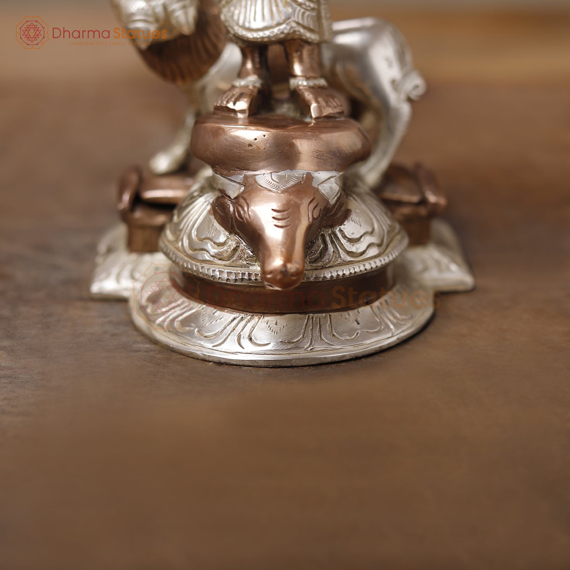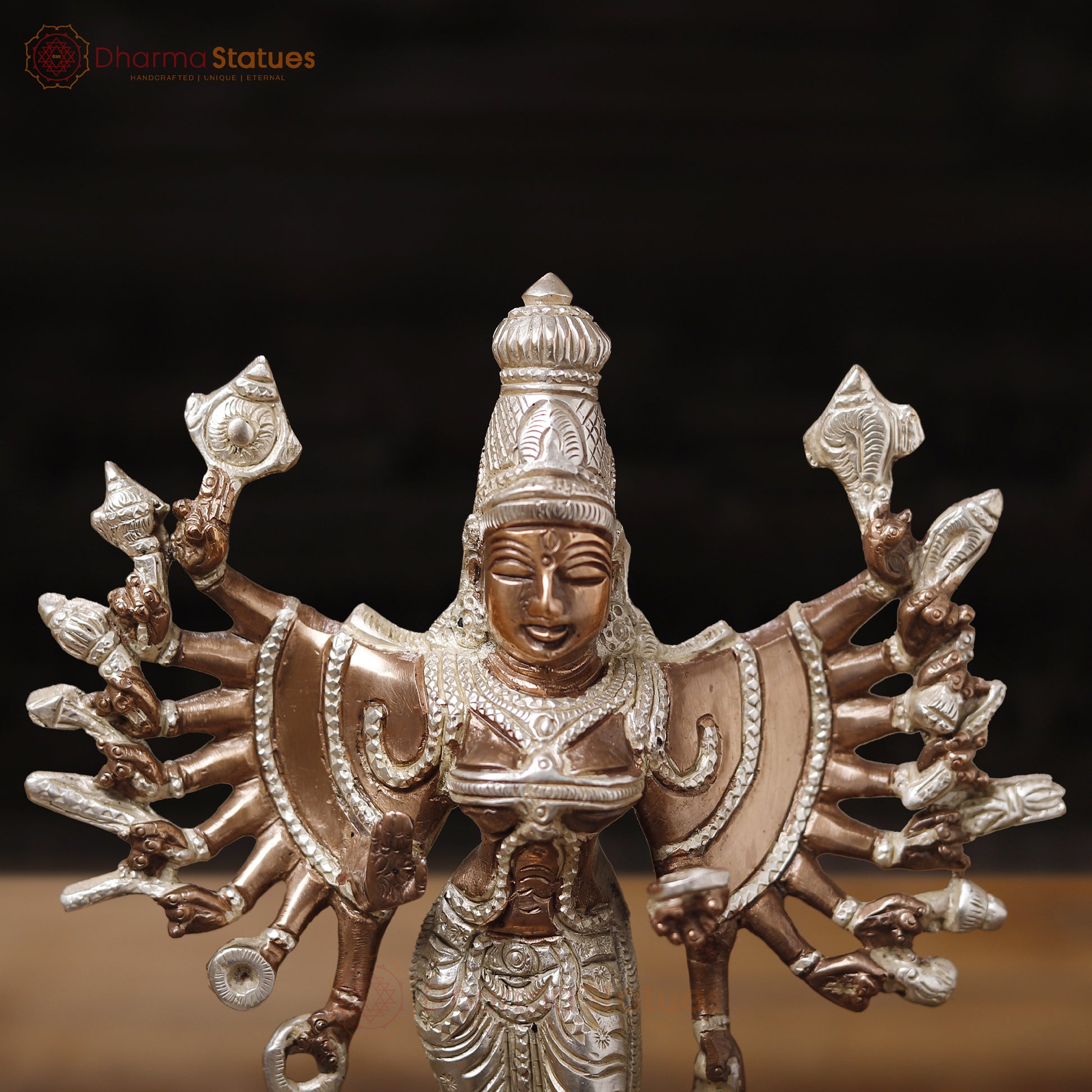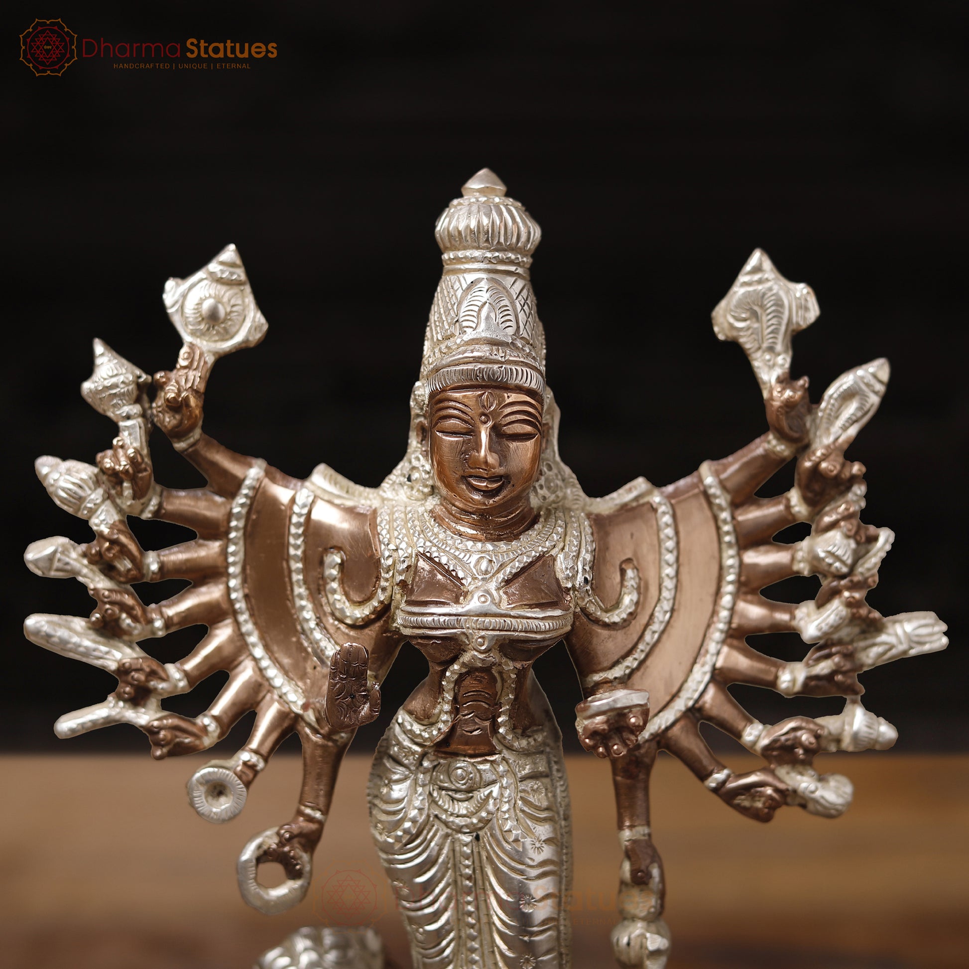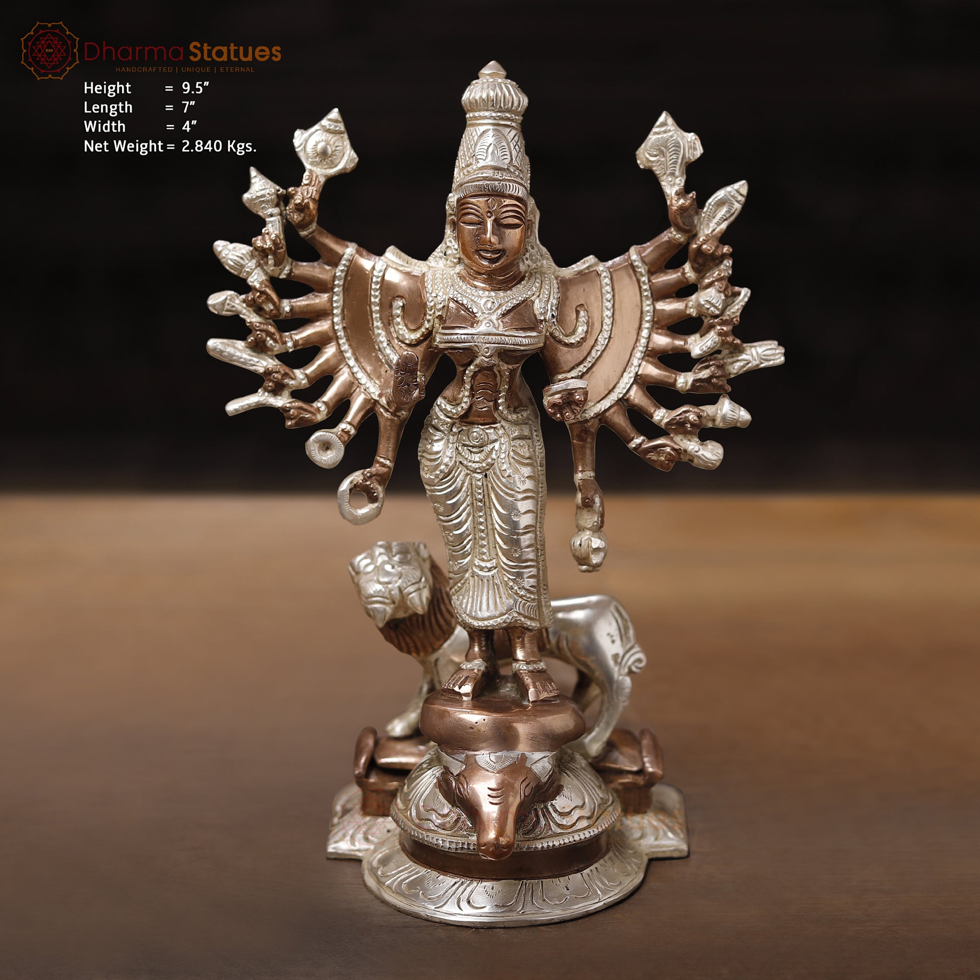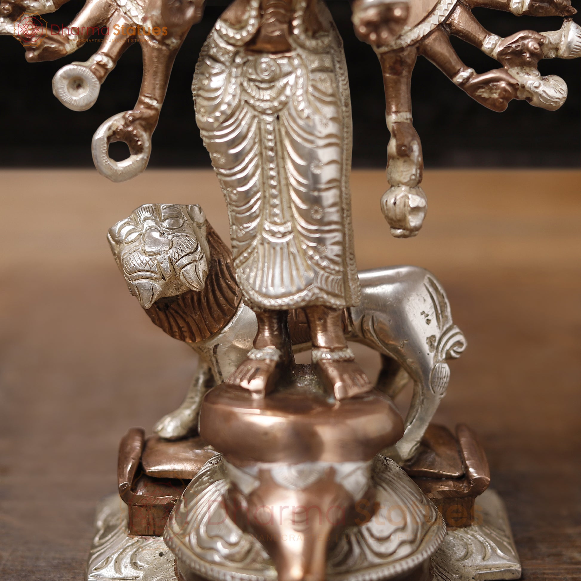 Brass Standing Durga (Bhogashakti), Exquisitely Handcrafted in Silver & Copper Finish, 9.5"