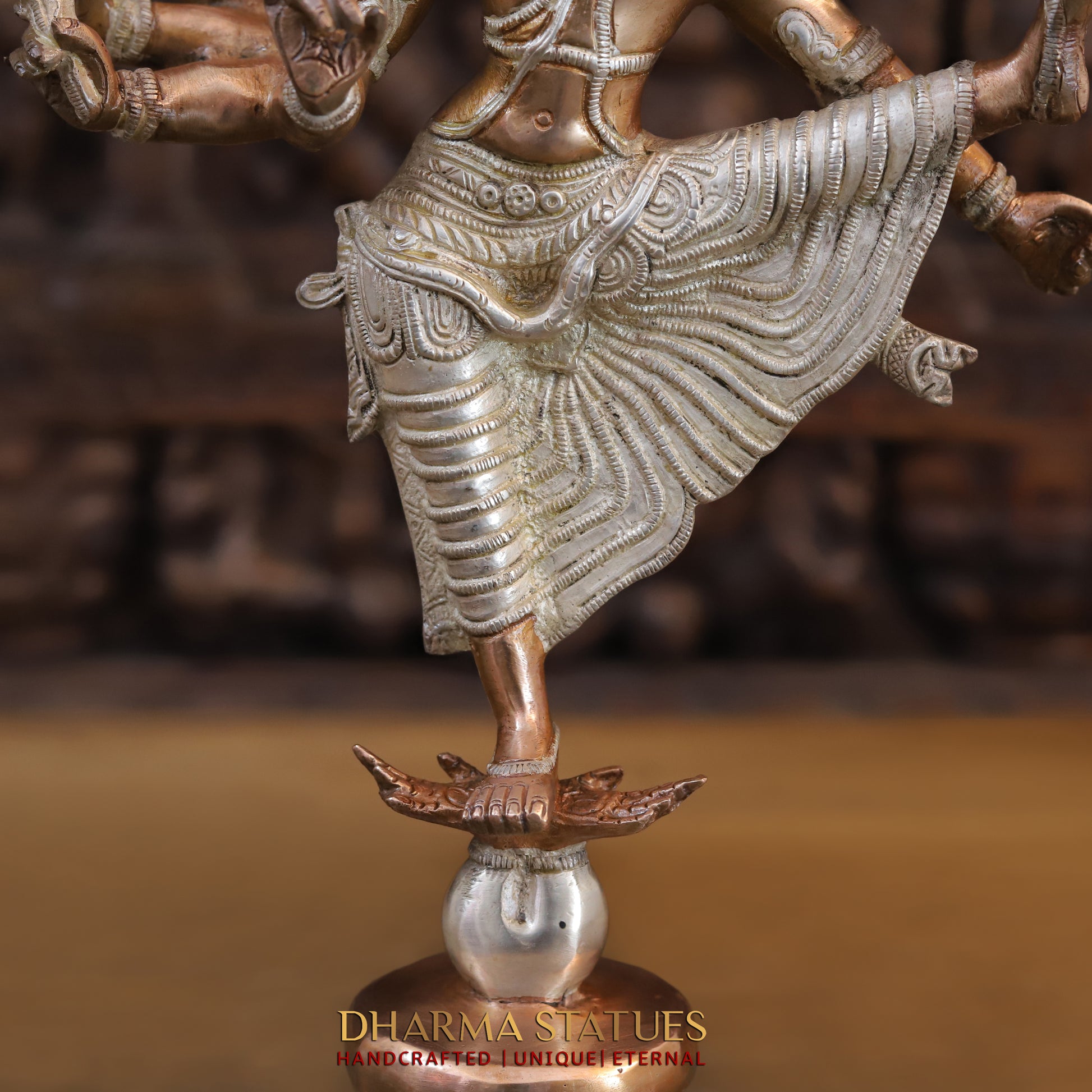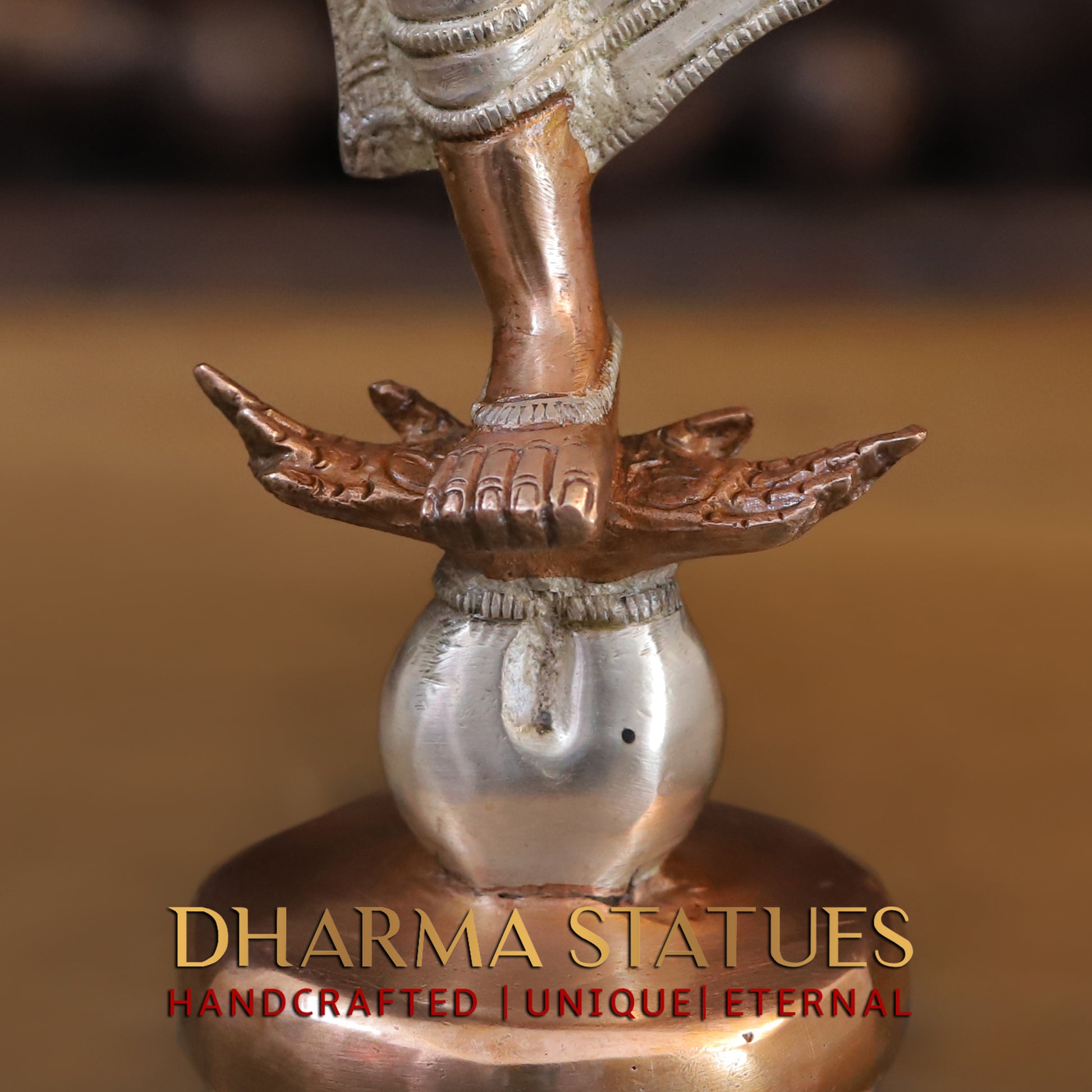 Brass Vishnu with 6 arms standing on Pedestal, Silver & Copper Finish, 17"