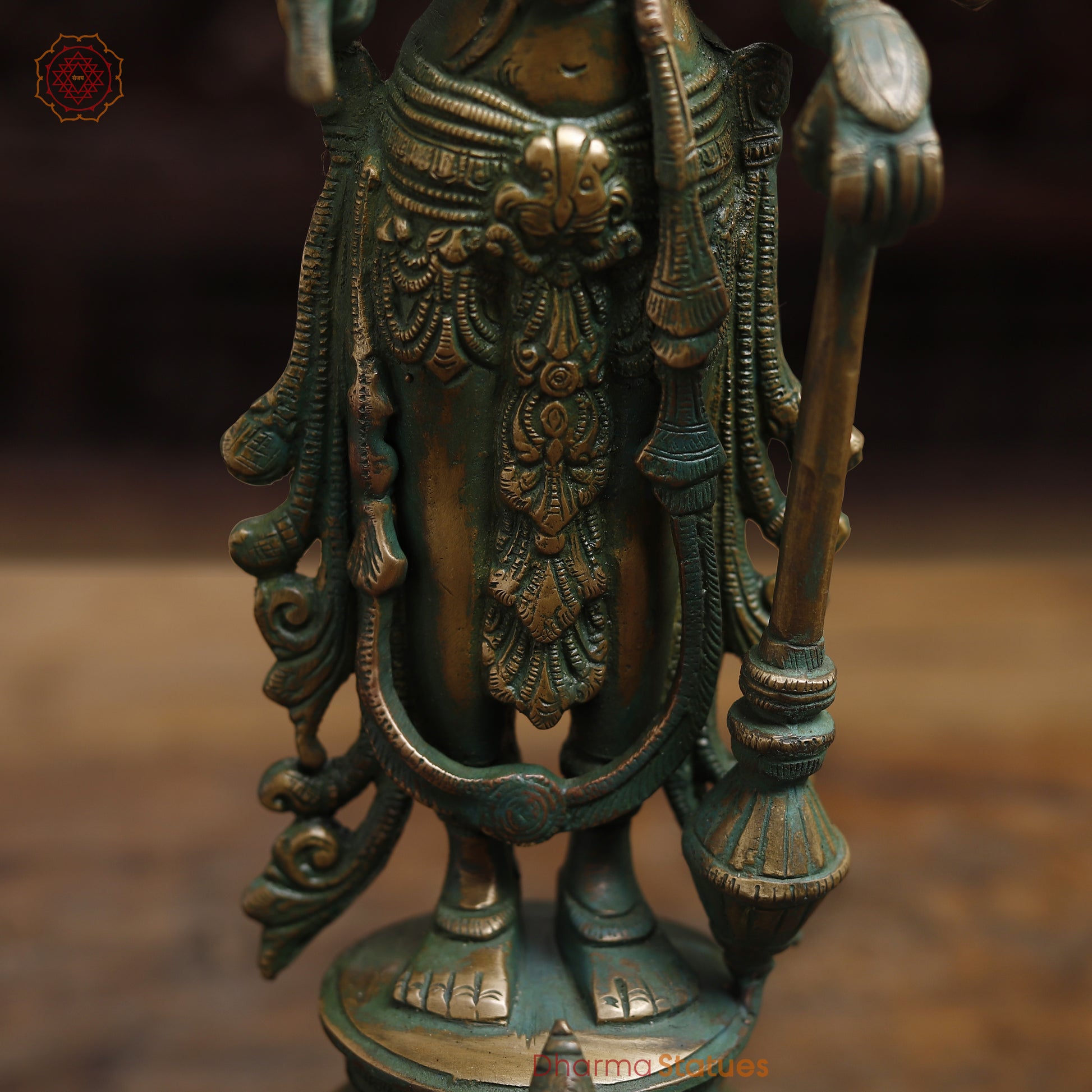 This 15" Brass Vishnu figurine, adorned with a stunning antique golden and green finish, will add an elegant touch to any home decor. The intricate detailing and high-quality brass material showcase the domain expertise and craftsmanship of this piece. Made to impress, this figurine is a perfect addition to any collection.