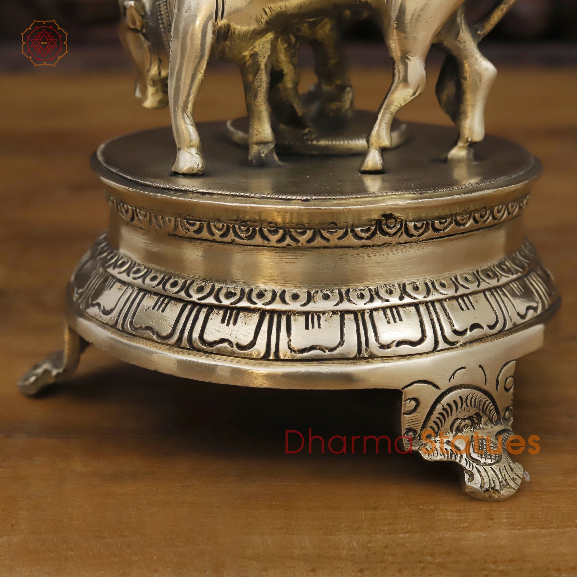 Brass Krishna Idol, Playing Flute Beside Cow, Golden work, 11"