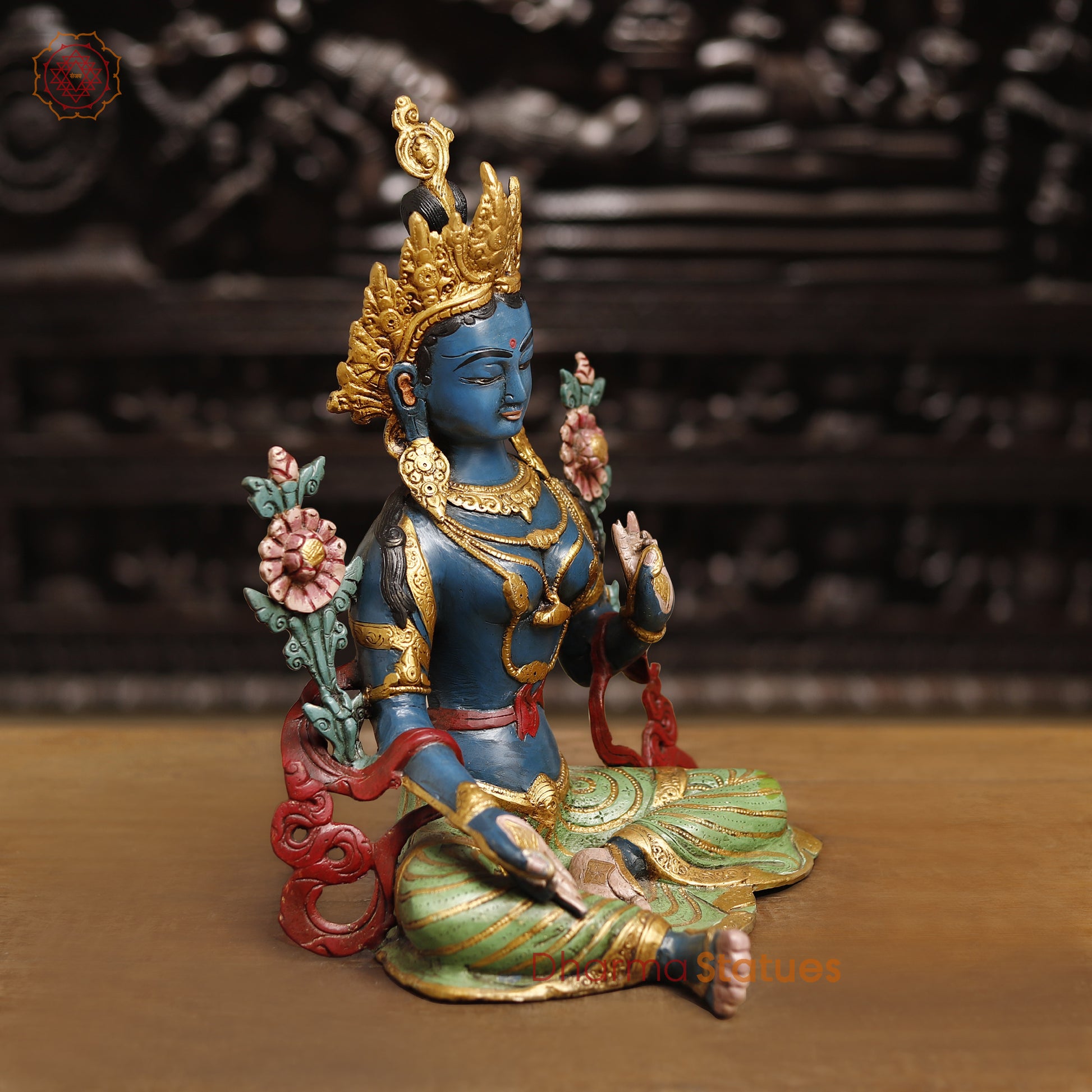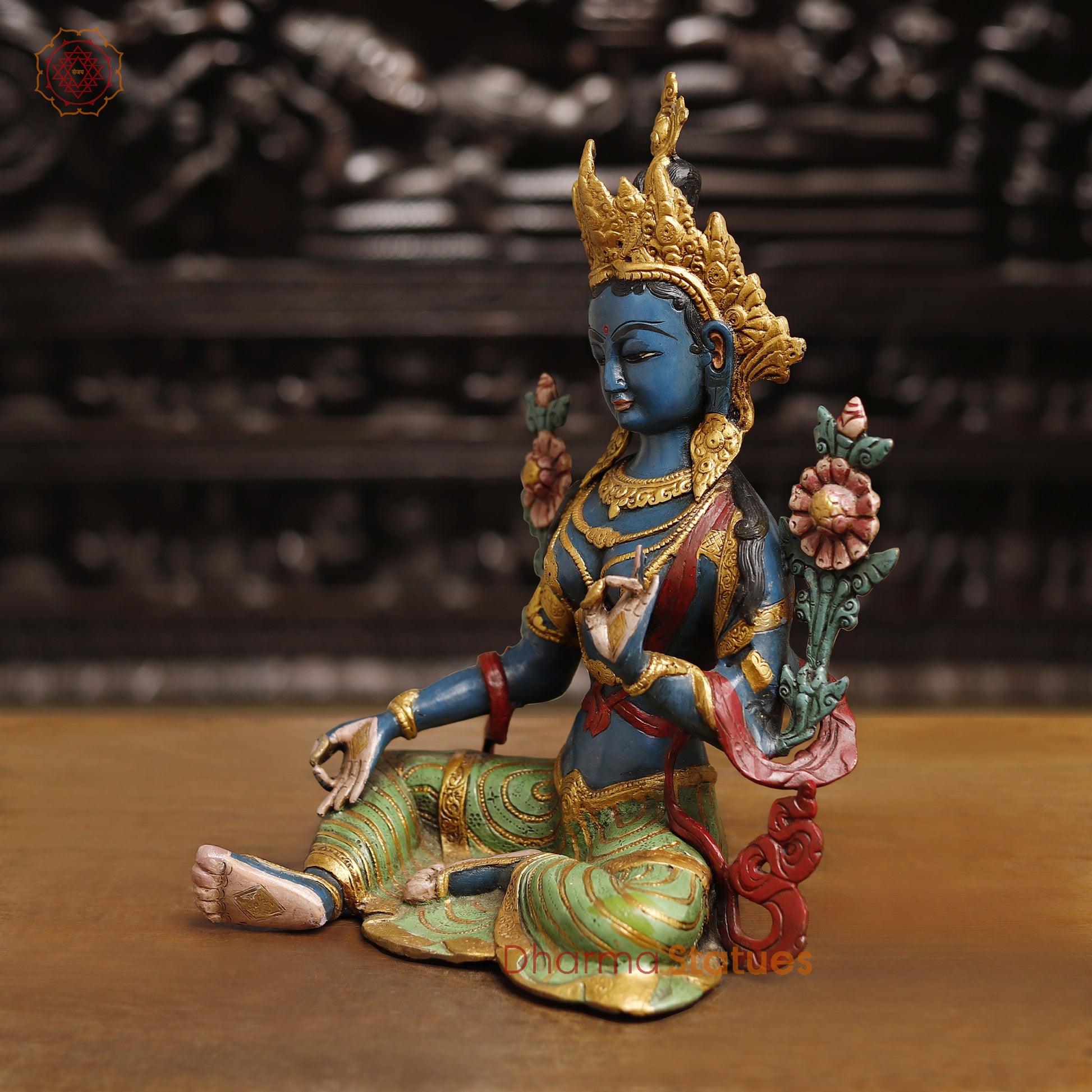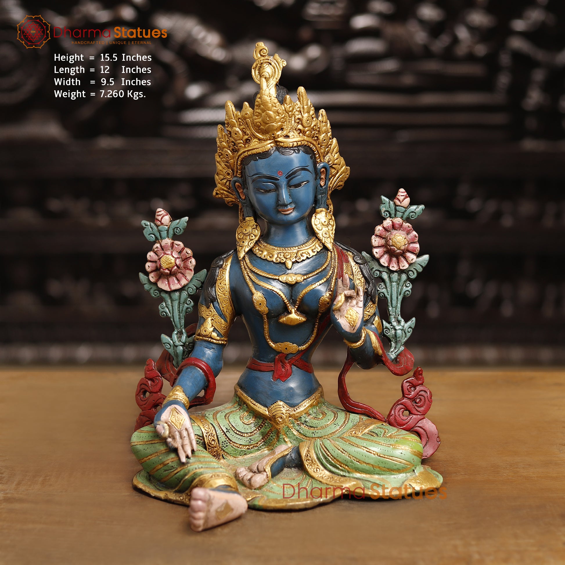 Brass Tara Devi Statue, Spiritual Tara Devi Idol, Multicolor Finish 15.5"