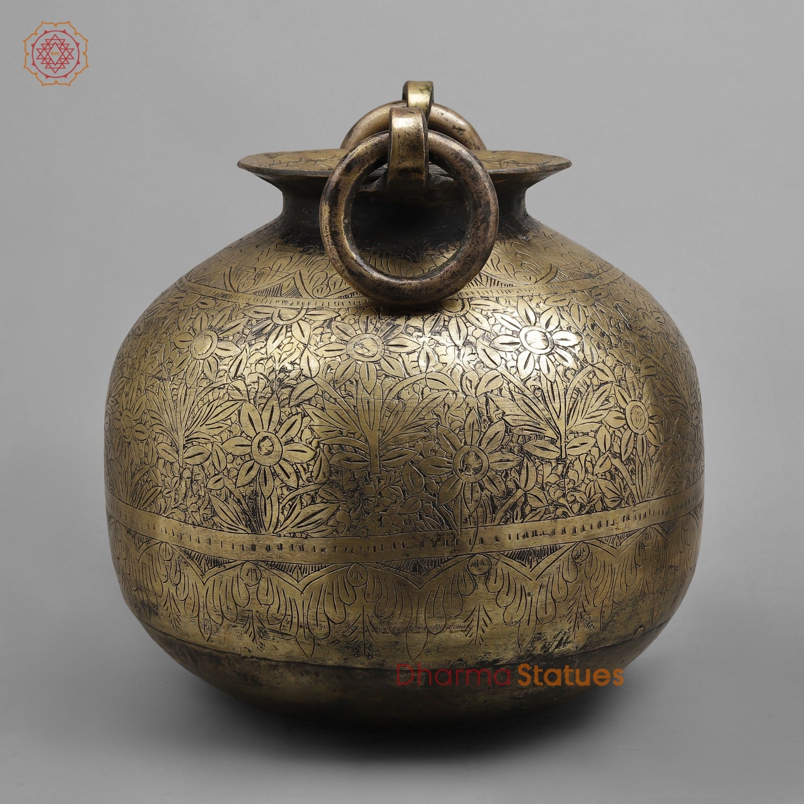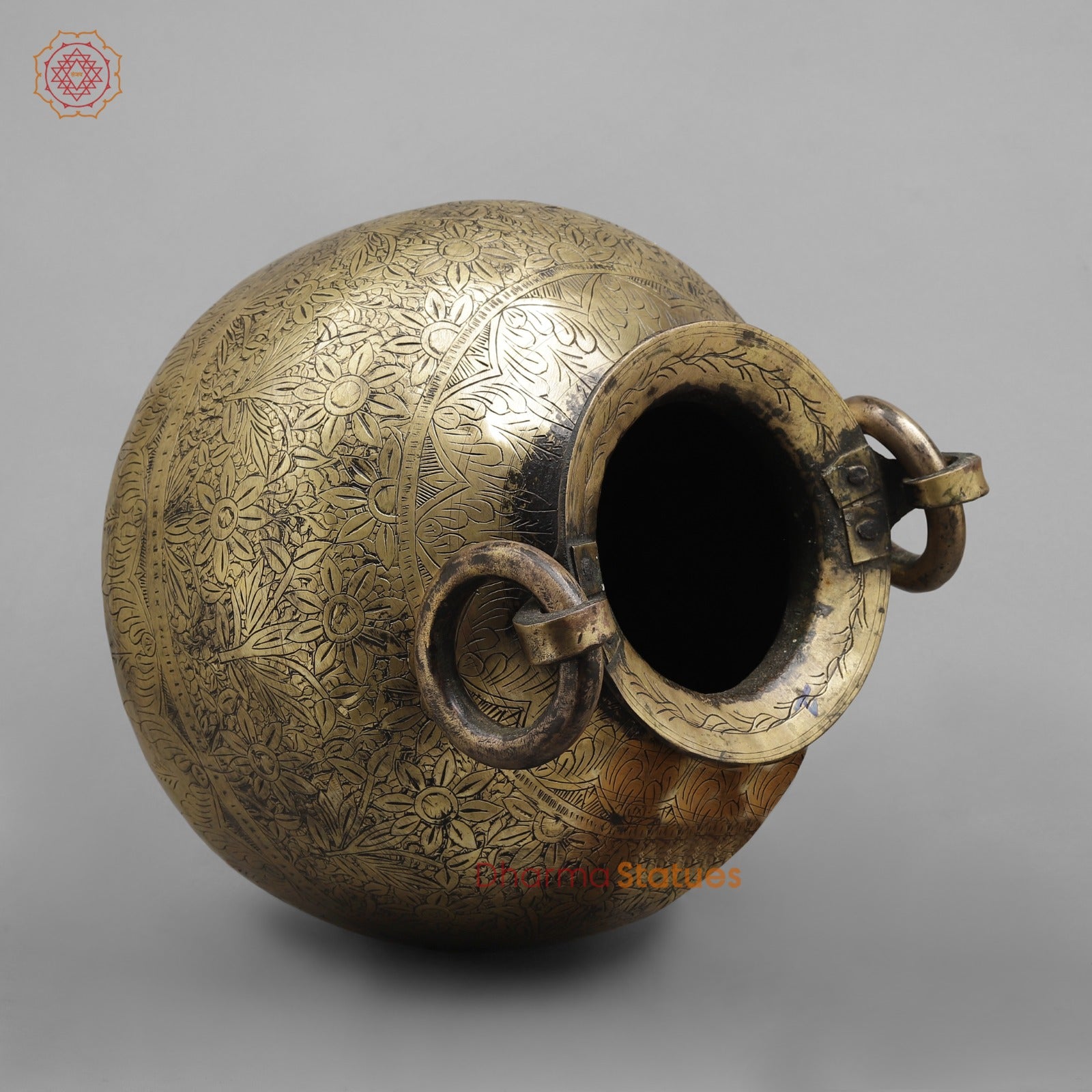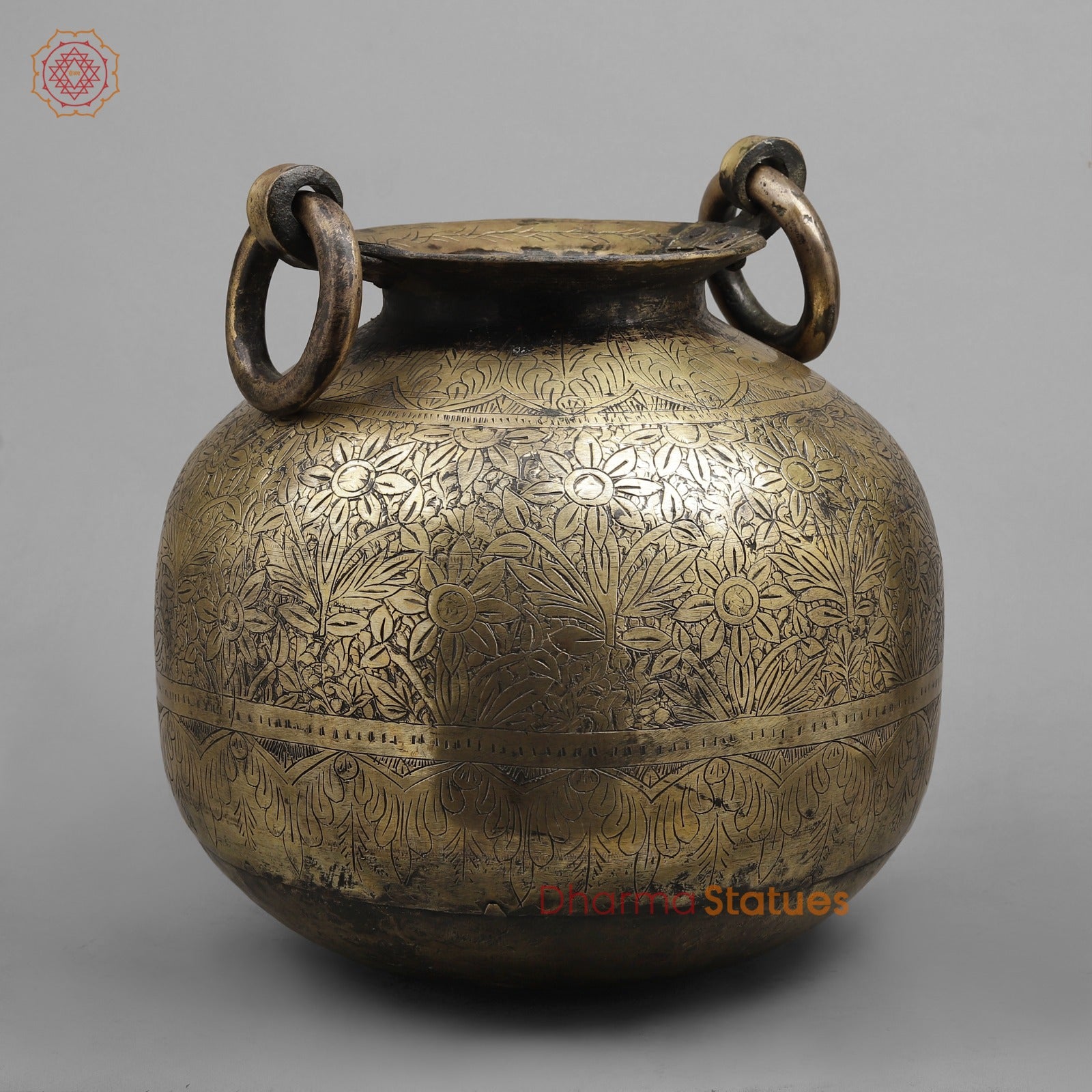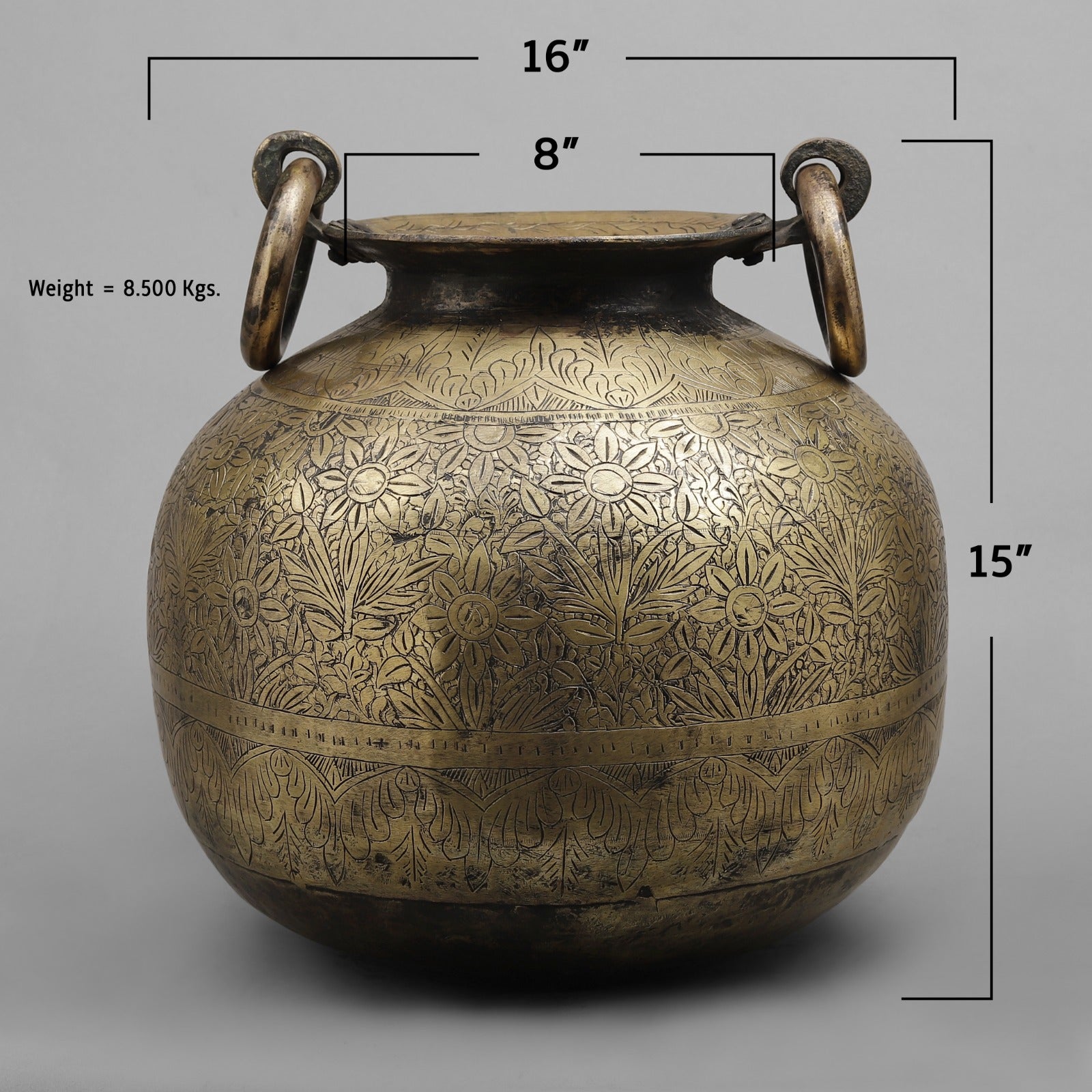 With its warm, aged patina and detailed engravings, this pot works perfectly as a statement décor piece for living rooms, entryways, heritage interiors, or boutique displays. It can be styled as a standalone collectible or used as a planter, floor accent, or storage vessel.